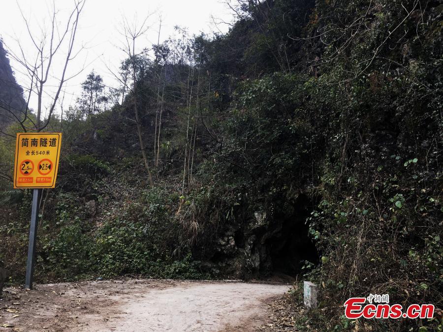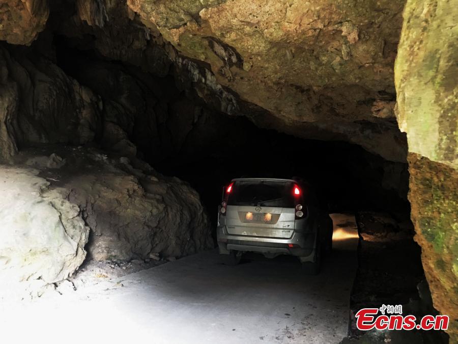 A road passes through a karst cave in Daihua Township, Changshun County, Southwest China’s Guizhou Province. The road inside the cave is five meters wide and 540 meters long, and it has many sharp bends. (Photo: China News Service/Yang Yun)