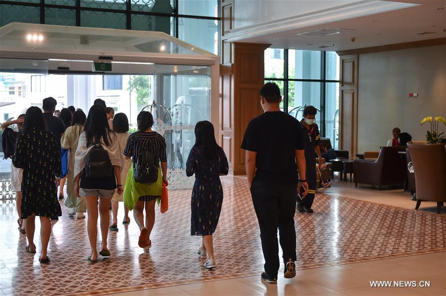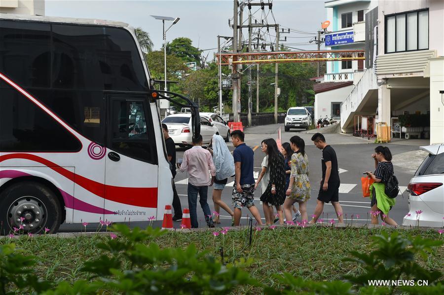 Chinese tourists leave the Bangkok Hospital Phuket for China's consular office in Phuket, Thailand, Jan. 15, 2018. A speedboat carrying 27 Chinese tourists and several Thai crews exploded on southern Thailand's Andaman Sea near Phi-Phi Islands on Sunday. Five Chinese were seriously injured. (Xinhua/Li Mangmang)