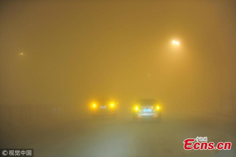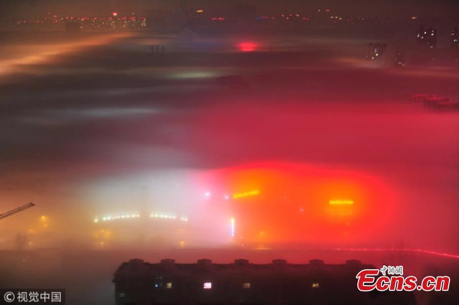 A dense fog engulfes Shenyang, capital of Northeast China's Liaoning province on Jan 17. (Photo/VCG)