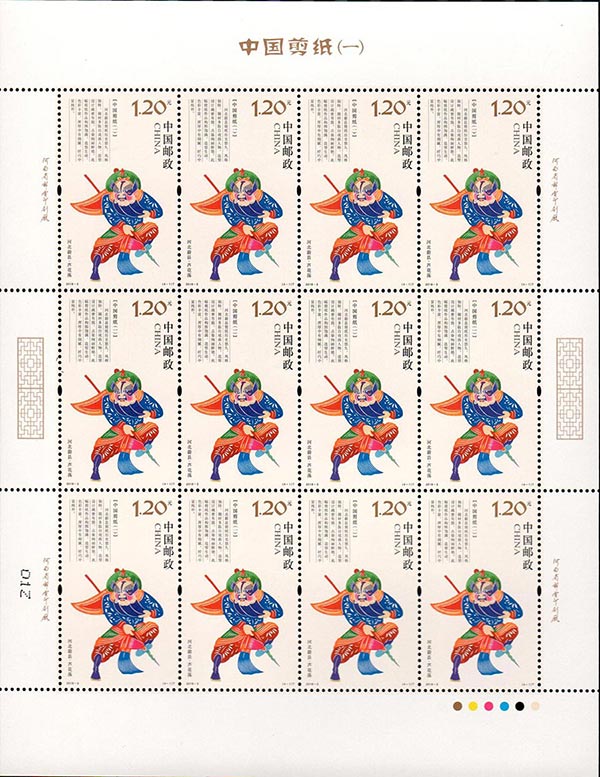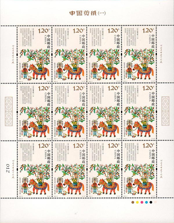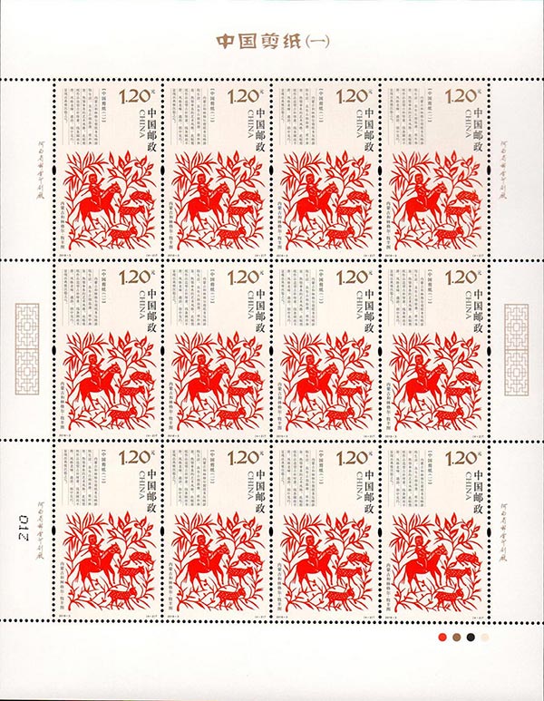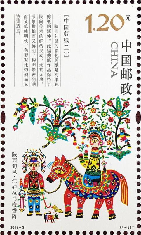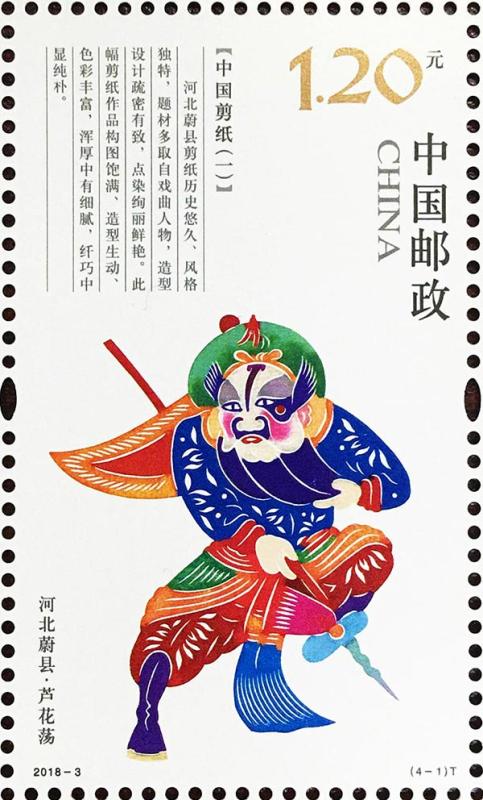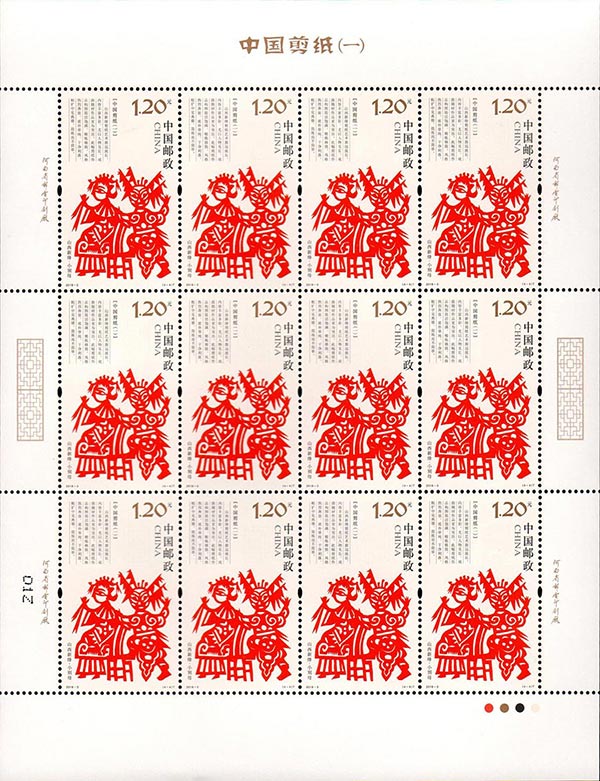 Traditional Chinese handicrafts regularly feature on postage stamps, and paper-cutting art is a popular choice because of the vivid colors, joyful motifs and primitive charm they use.
