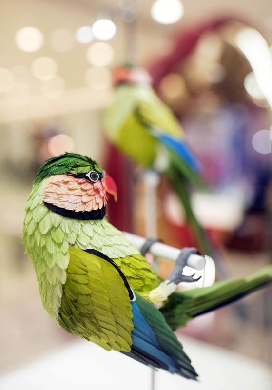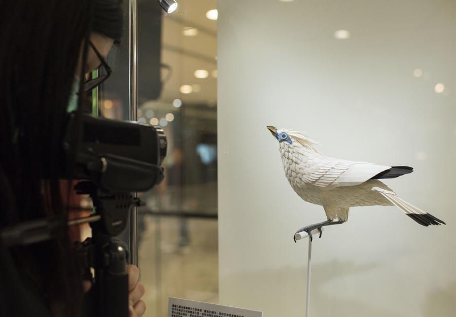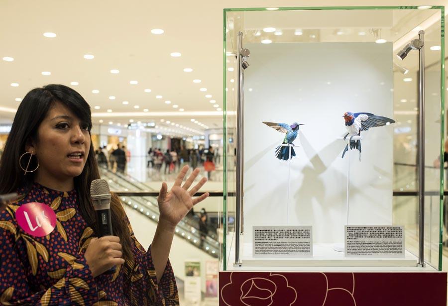 Colombian artist Diana Beltran Herrera has channeled her love of nature into lifelike paper sculptures of birds. A solo exhibition featuring 14 sets of Herrera's paper crafts is being held at Harbor city in Tsim Sha Tsui, Hong Kong, through March 2. This photo shows Herrera introducing her works to audience members at a media preview on Jan. 24, 2018. (Photo/Xinhua)