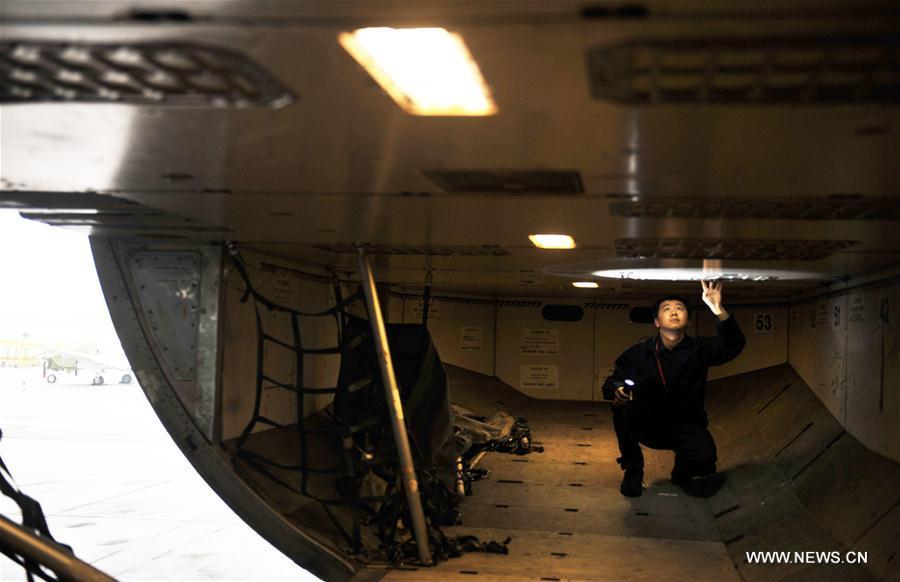 A staff member paints the wings of an aircraft at a maintenance base of the China Southern Airlines in Haikou, capital of south China's Hainan Province, Jan. 28, 2018. The China Southern Airlines conducts safety check on its planes for the upcoming travel rush for the Spring Festival, or Chinese Lunar New Year. (Xinhua/Chu Hongyu)