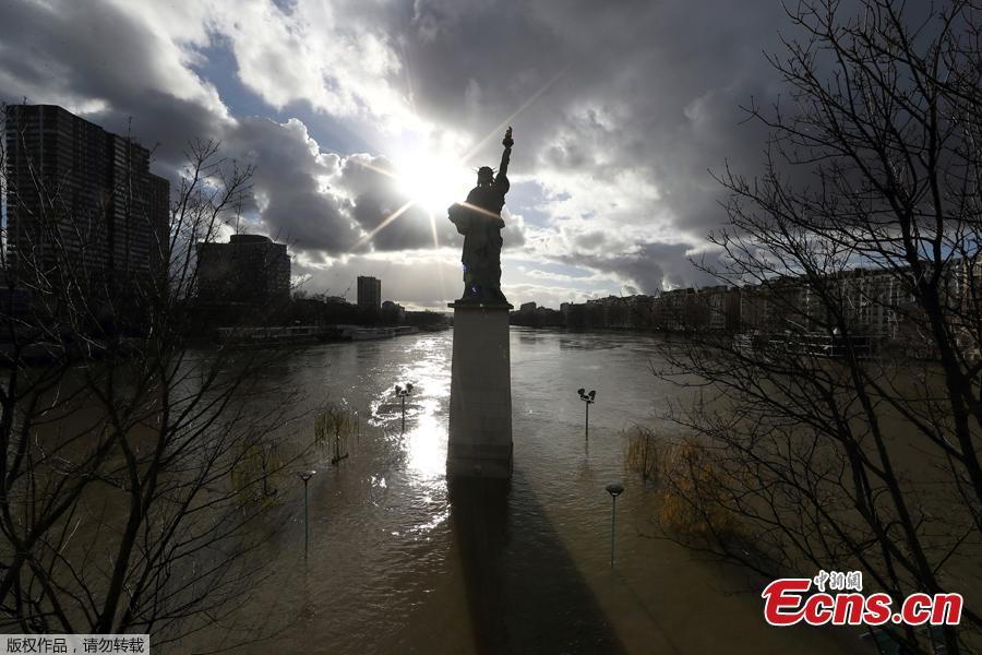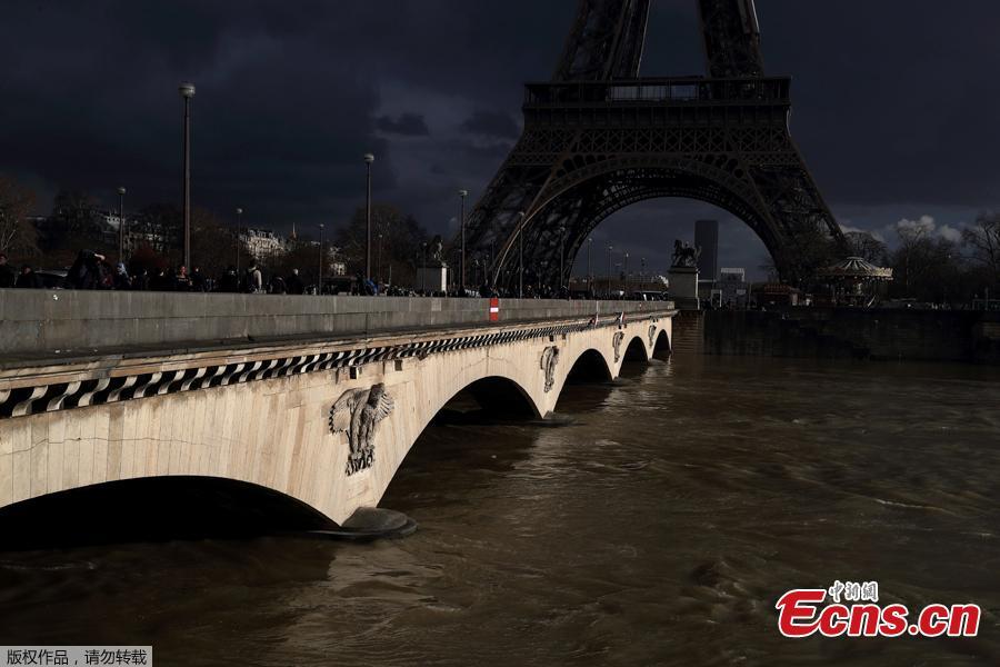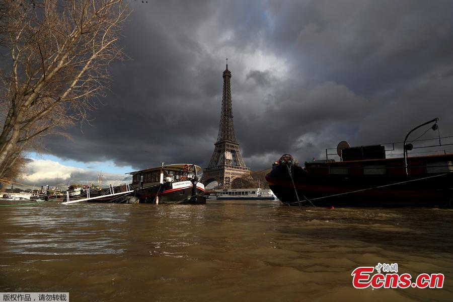 The Eiffel Tower is seen in Paris as swollen Seine River continues to rise, Jan. 29, 2018. Around 1,500 people have been evacuated from their homes in the greater Paris region, according to police. (Photo/Agencies)