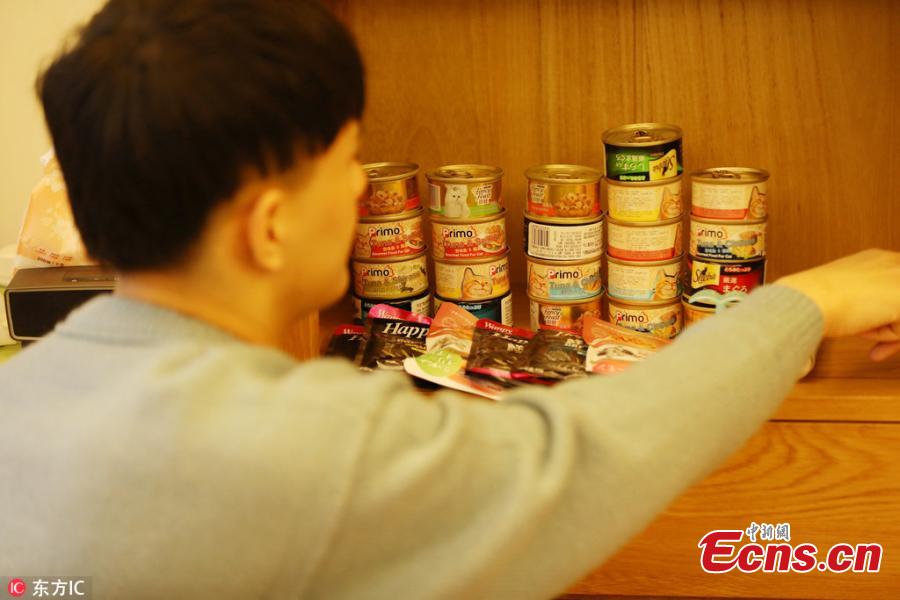 A senior student at Zhejiang University looks after a cat in Hangzhou City, the capital of East China’s Zhejiang Province. The student, who wants to be identified by the alias Xiao Yang, advertised online that he will not go back to his hometown in Yunnan Province for Spring Festival and can look after cats during the seven-day holiday. He also promised elaborately prepared New Year dishes for the felines including chicken, fish, yogurt, corn and salad, and even a different treat on every day. Hoping he can make some extra money, he said he can handle four cats at most. “I will treat every cat gently as if they are a child,” he said. (Photo/IC)