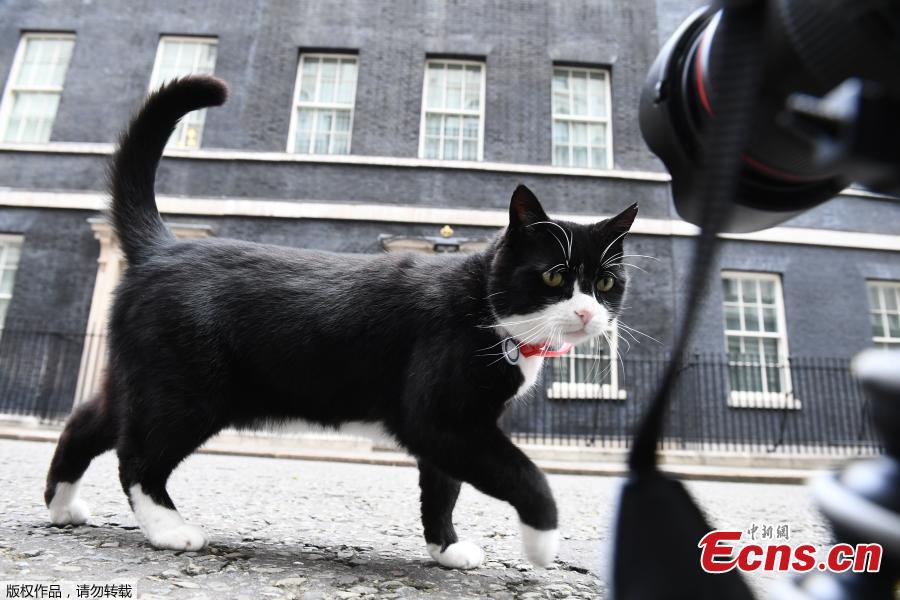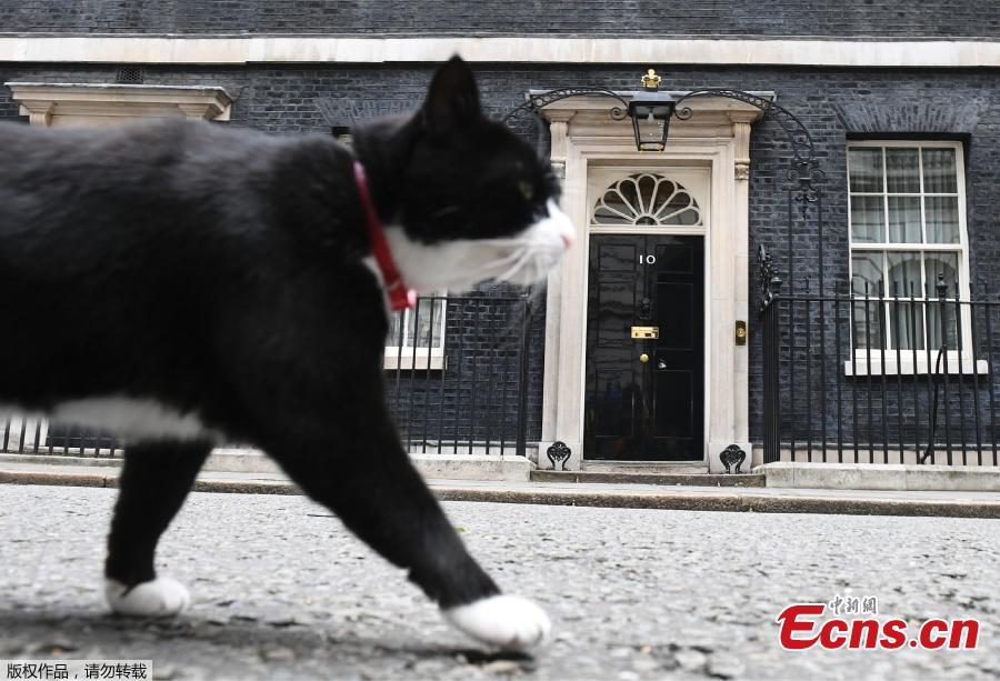 Palmerston, the Foreign Office cat, stands outside 10 Downing Street in London, Britain. Palmerston the cat has become a popular addition to the Foreign Office. But senior diplomats are concerned that he has become rather too well-loved. Staff have been asked to avoid giving the department's chief mouser tidbits to eat amid office rumors that he has become less effective at his job of catching mice. (Photo/Agencies)