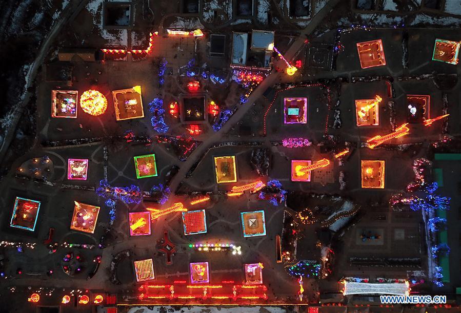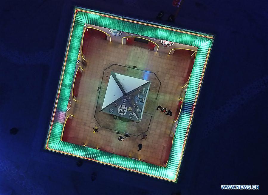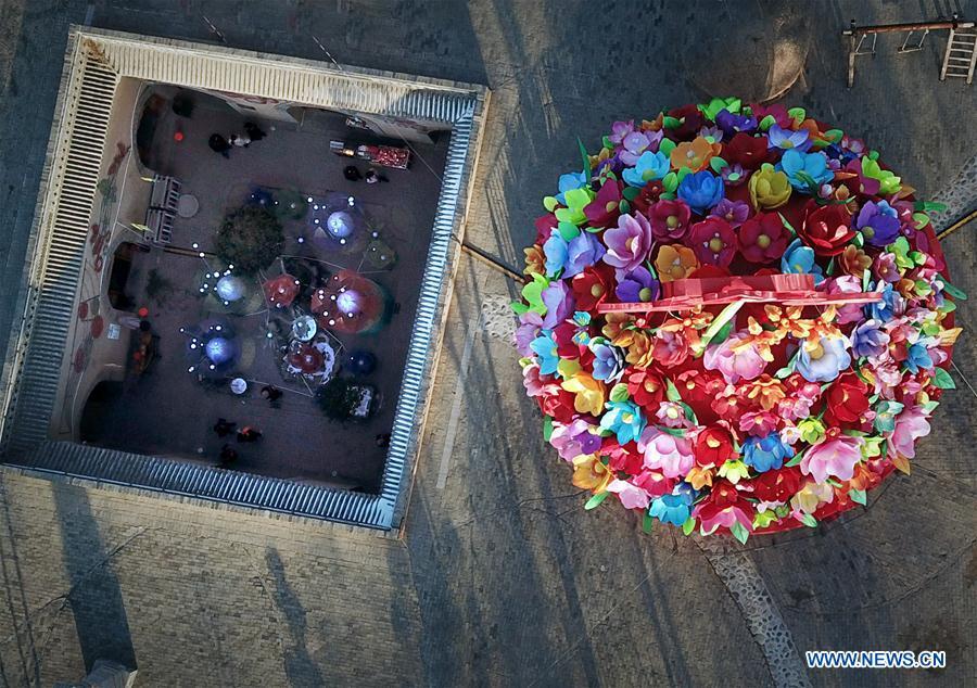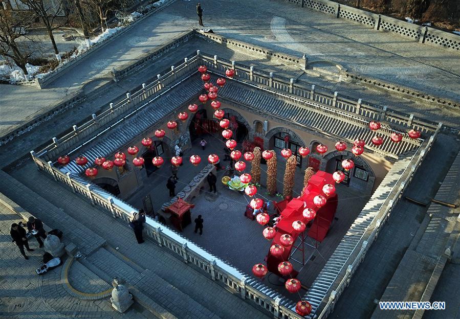 Photo taken on Feb. 3, 2018 shows the lantern-decorated underground courtyards in Shanzhou District of Sanmenxia, central China's Henan Province. Underground courtyard in Shanzhou, unique residence in mountainous areas of western Henan, is listed as the national intangible cultural heritage in 2011. (Xinhua/Li An)