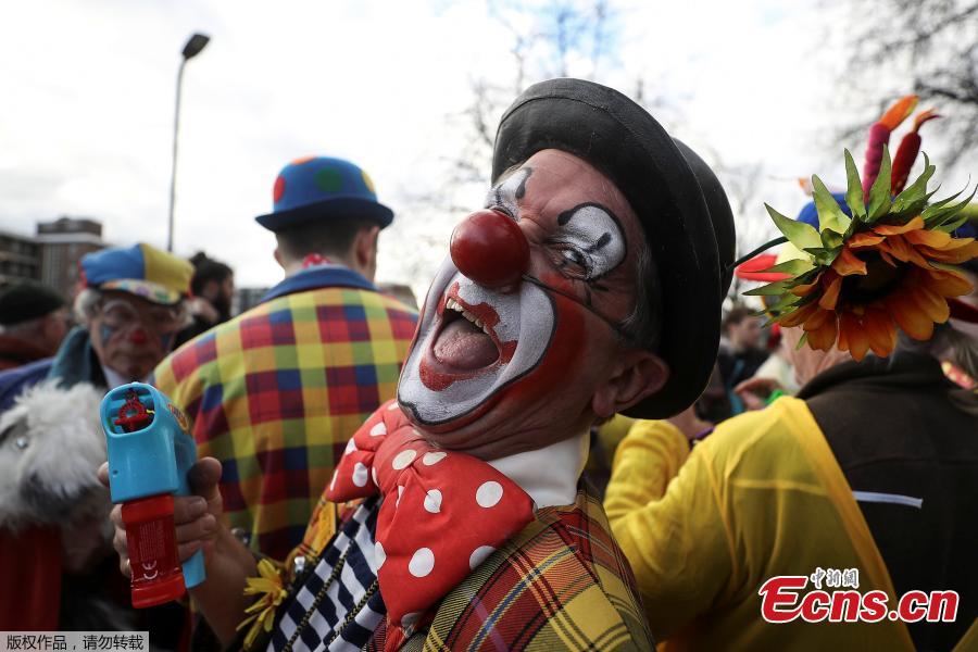 Clowns attend the annual Grimaldi Memorial Service at the All Saints church in east London on February 4, 2018. The service takes place to celebrate the father of modern clowning, Joseph Grimaldi, who died in 1837. (Photo/Agencies)