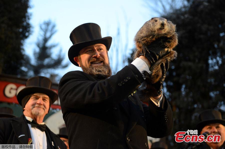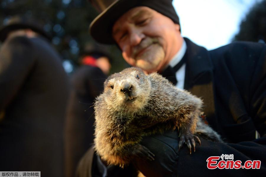 Groundhog Club co-handler Al Dereume holds Punxsutawney Phil, the weather prognosticating groundhog, during the 132nd celebration of Groundhog Day on Gobbler's Knob in Punxsutawney, Pennsylvania, Feb. 2, 2018. Phil's handlers said that the groundhog has forecast six more weeks of winter weather. (Photo/Agencies)