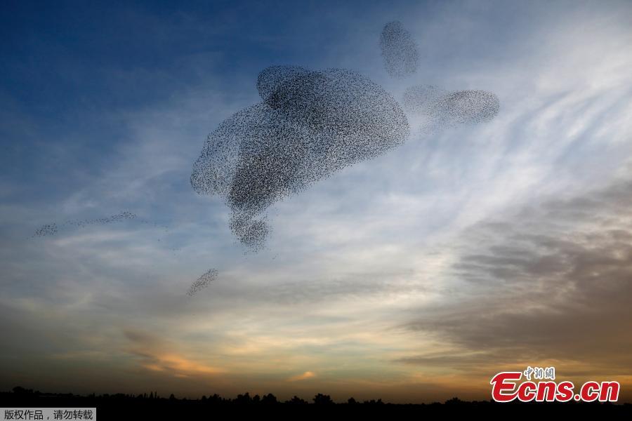A murmuration of starlings perform their traditional dance before landing to sleep in the Negev desert of Israel, Feb. 4, 2018. (Photo/Agencies)