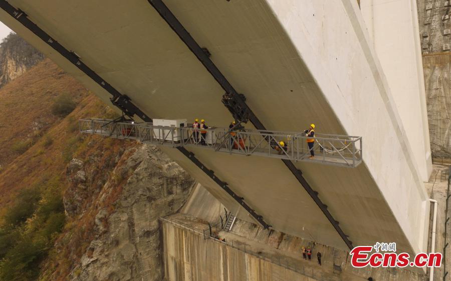 Workers keep Beipan River bridge safe during travel peak(1/9)