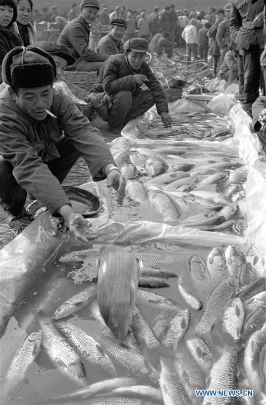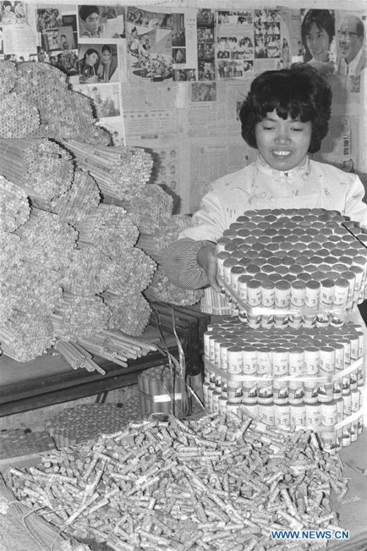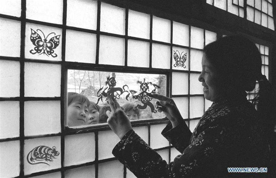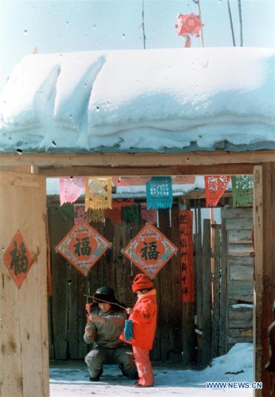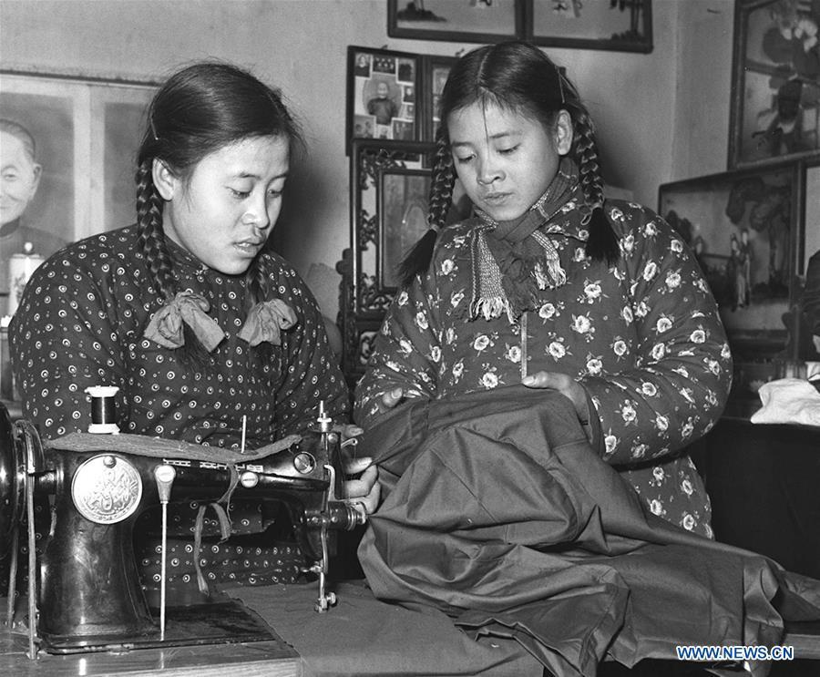 File photo taken in January, 1955 shows Du Suqin (L) and her little sister making new clothes before the Spring Festival in Zhaizi Village of Hancheng Town of Fengrun County in Tangshan City, north China's Hebei Province. New Year goods, an indispensable part for Chinese during the Spring Festival, is believed to be the carrier for luck and fortune in a brand new year. It's not the goods but the process that people prepare the goods with their beloved ones that matters the most. Spring Festival, or better known as Chinese Lunar New Year, is the most important festival for all Chinese, which has a history of more than 4,000 years. It is an occasion for home returning, New Year goods preparing, celebrating, and foremost, family reunion. (Xinhua/Sheng Guo)
