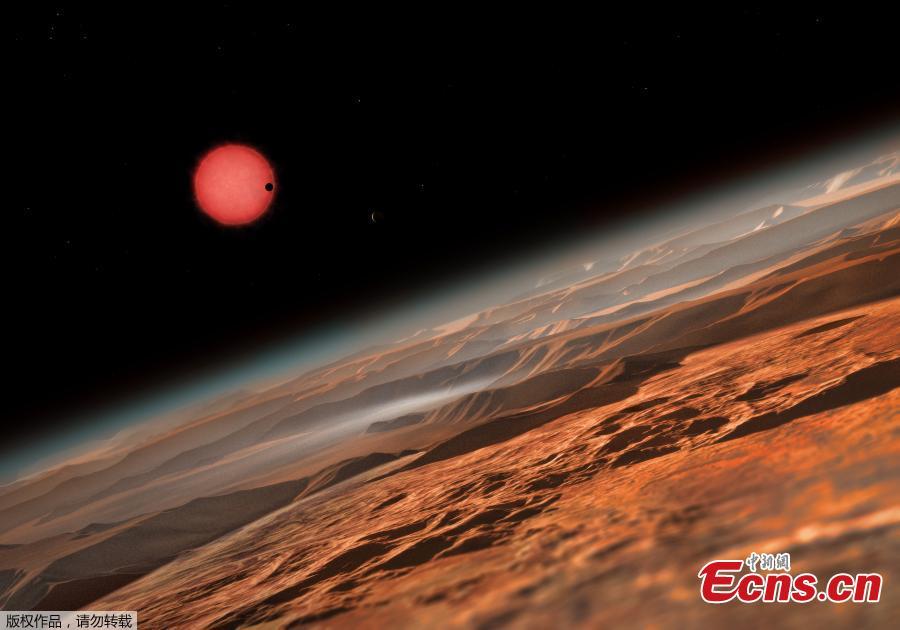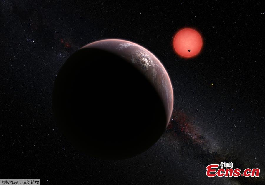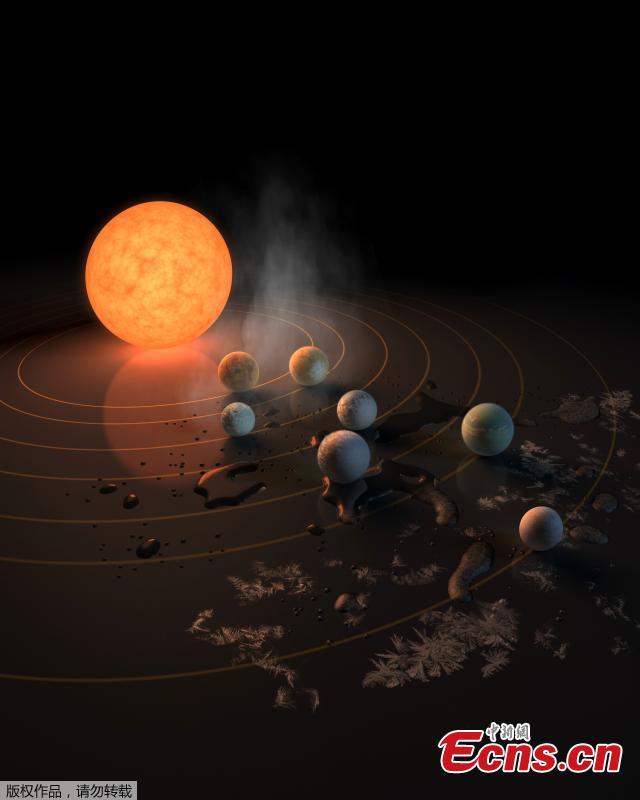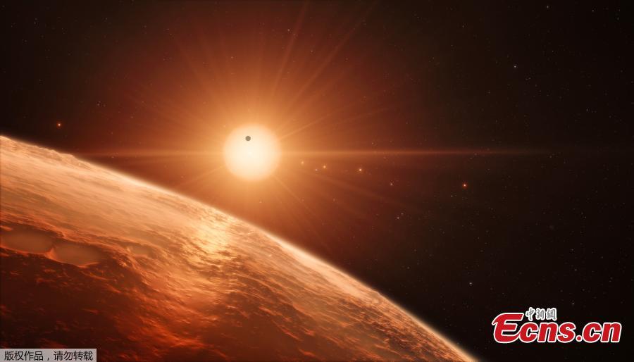 An artist’s impression shows the TRAPPIST-1 star, an ultra-cool dwarf, has seven Earth-size planets orbiting it. Seven planets recently spotted orbiting a dim star in our Milky Way galaxy are rocky, seem to have water, and are potentially "habitable", researchers studying the distant system said Monday. A year ago, researchers announced the discovery of the seven Earth-like planets orbiting Trappist-1, an "ultracool" red dwarf star some 39 light years from our home. (Photo/Agencies)