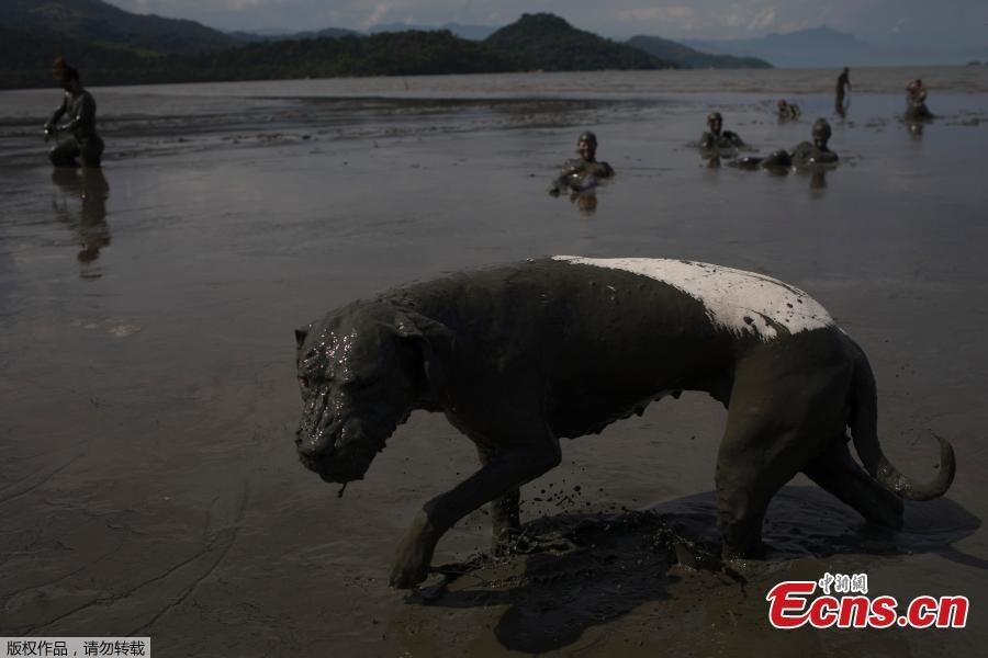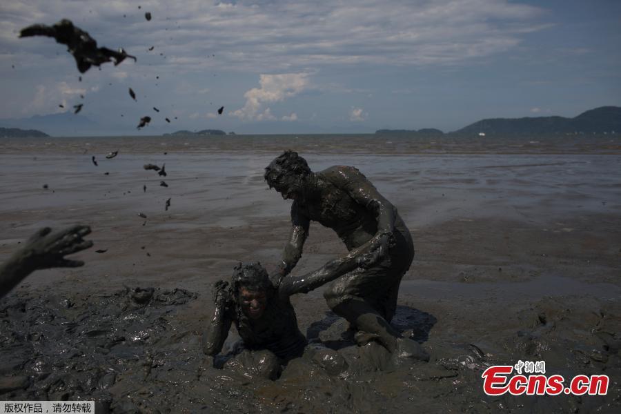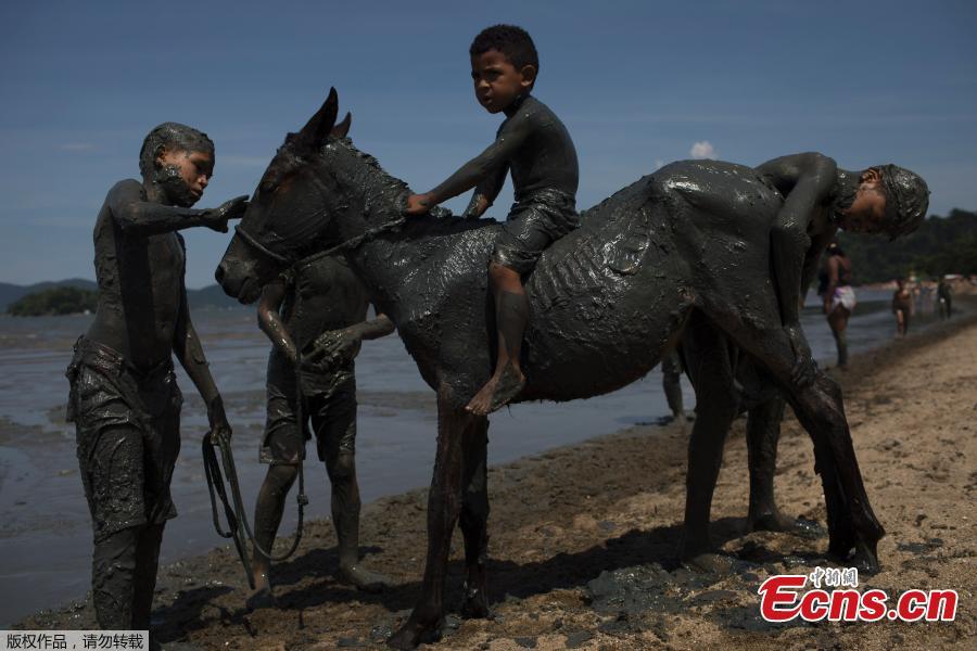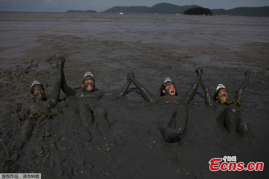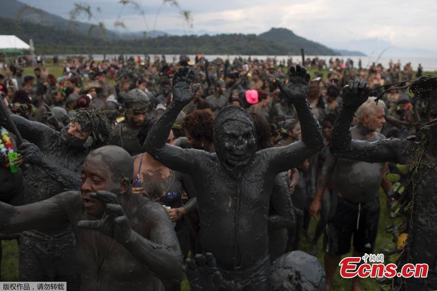 A member of the "Bloco da Lama" (Block of Mud) group performs on Jabaquara beach, during a carnival festivities in Paraty, Brazil, Feb. 10, 2018. (Photo/Agencies)