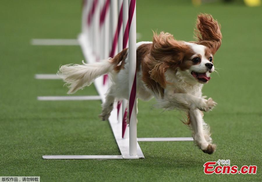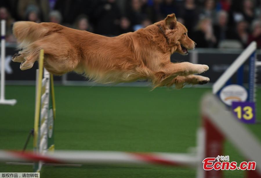 Tommee, a golden retriever, competes in the Masters Agility Championship during the Westminster Kennel Club's Westminster Week in New York, Feb. 10, 2018. Beginning Feb. 10, more than 3,200 dogs from as many as 202 breeds and varieties will gather at the Westminster Kennel Club to compete in the name of puppy preeminence. (Photo/Agencies)