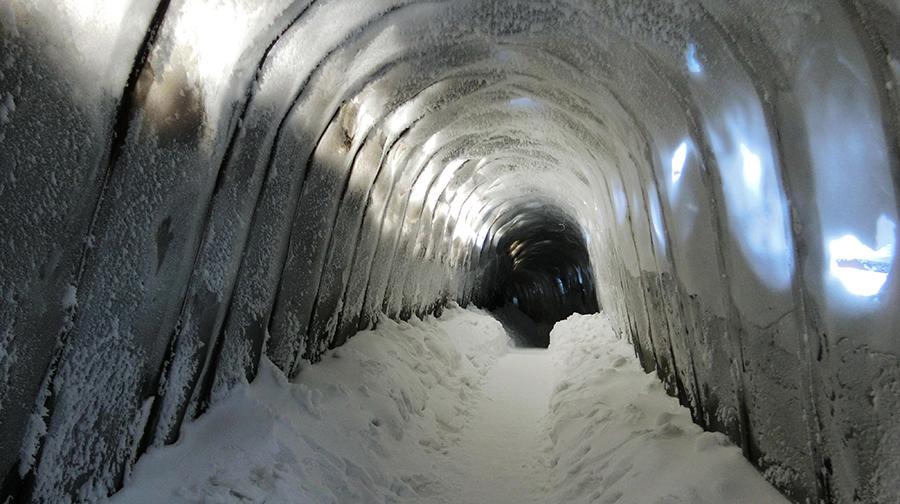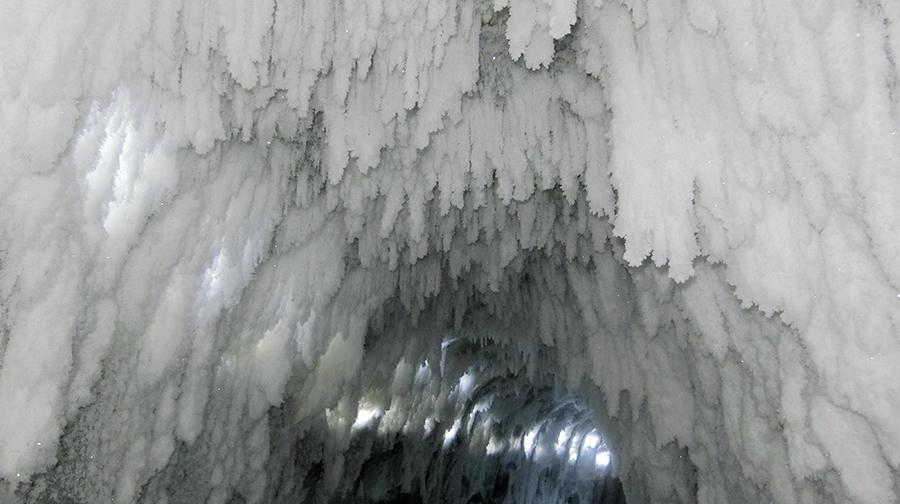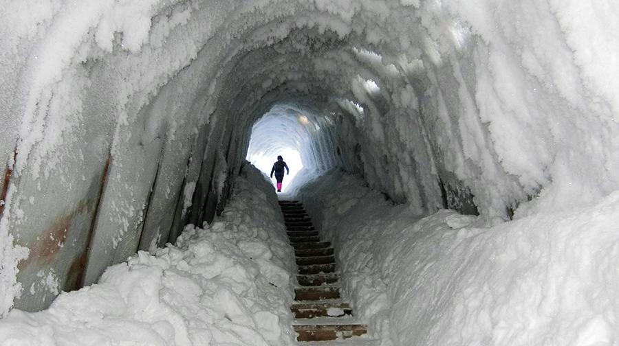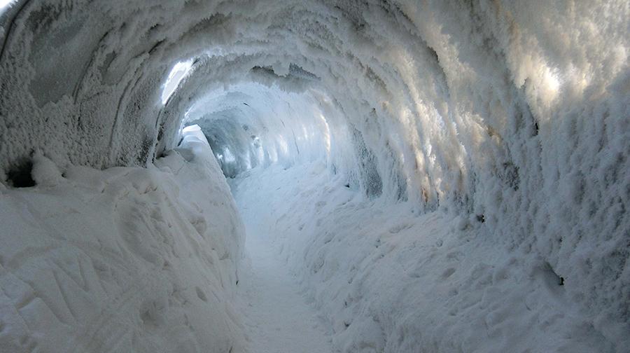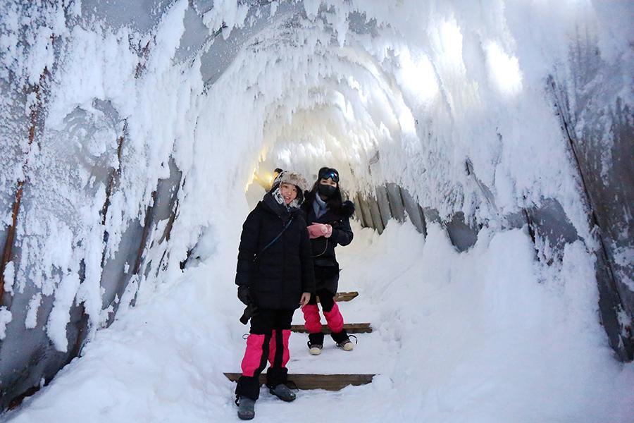 After a cold spell, a 200-meter-long cave with thick snow and ice appeared in an artificial dragon in Wuchang city, Heilongjiang Province. (Photo by Wei Jianshun/for chinadaily.com.cn)