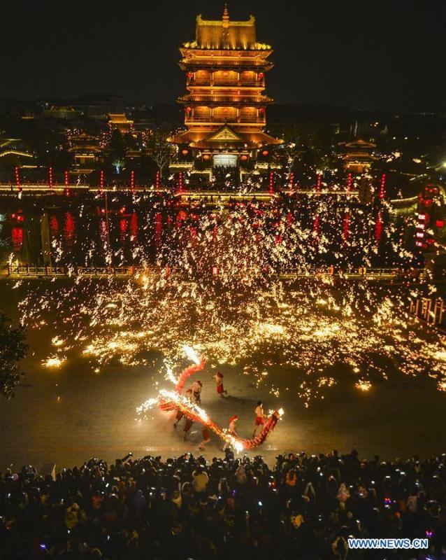 Folk artists perform dragon dance in Gaoling Town of Du'an County, south China's Guangxi Zhuang Autonomous Region, Feb. 16, 2018, the second day of the Spring Festival holiday. (Xinhua/Mo Xiantao)