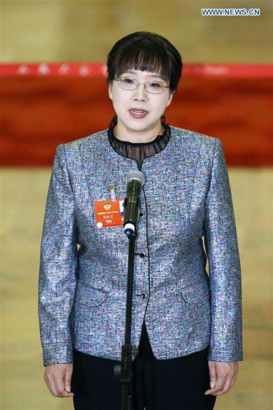 Yang Liwei (C), Pan Jianwei (R) and Zhao Hongwei, members of the 13th National Committee of the Chinese People's Political Consultative Conference (CPPCC), receive an interview ahead of the opening of the first session of the 13th CPPCC National Committee at the Great Hall of the People in Beijing, capital of China, March 3, 2018. (Xinhua/Zhang Yuwei)