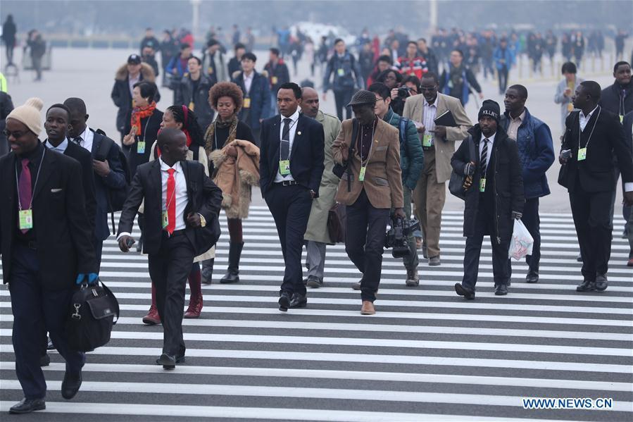 Journalists walk towards the Great Hall of the People for the first session of the 13th National Committee of the Chinese People's Political Consultative Conference (CPPCC) in Beijing, capital of China, March 3, 2018. (Xinhua/Xing Guangli)