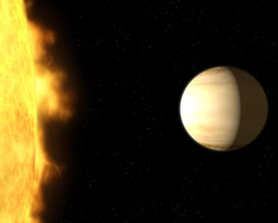 Scientists used NASA's Hubble and Spitzer space telescopes to find a large amount of water in the atmosphere of WASP-39b, a hot, bloated, Saturn-mass exoplanet that resides about 700 light-years from Earth. This "hot Saturn" actually has three times as much water as Saturn does. WASP-39b whips around a quiet, Sun-like star, called WASP-39, once every four days. The exoplanet is currently positioned more than 20 times closer to its star than Earth is to the Sun. It is tidally locked, meaning it always shows the same face to its star. (Photo/NASA)