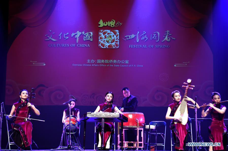 Musicians perform during the "Culture of China, Festival of Spring" gala to celebrate Chinese New Year in San Francisco, the United States, on March 3, 2018. (Xinhua/Wu Xiaoling)
