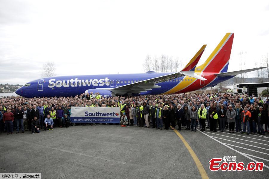 The 737 MAX 8 produced for Southwest Airlines is pictured as Boeing celebrates the 10,000th 737 to come off the production line in Renton, Washington, U.S., March 13, 2018. (Photo/Agencies)
