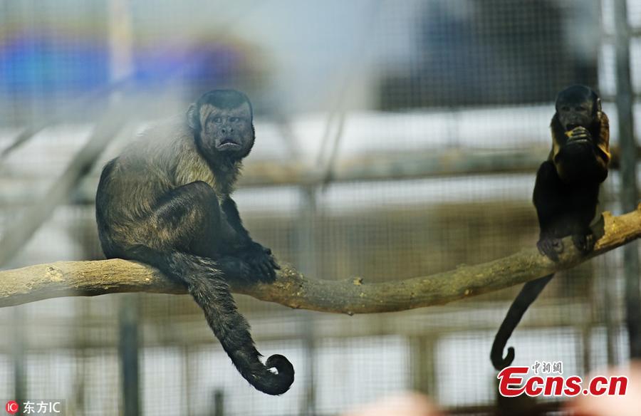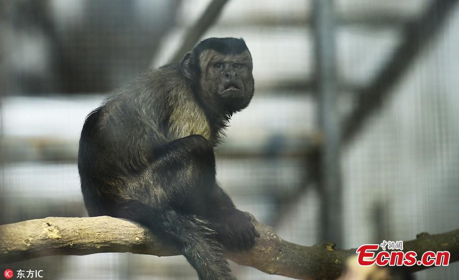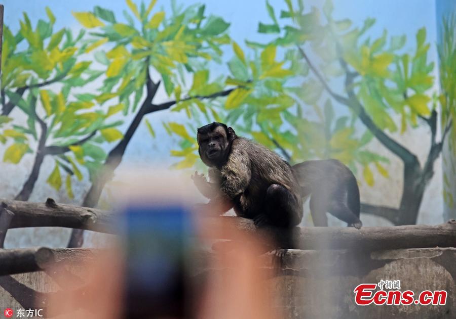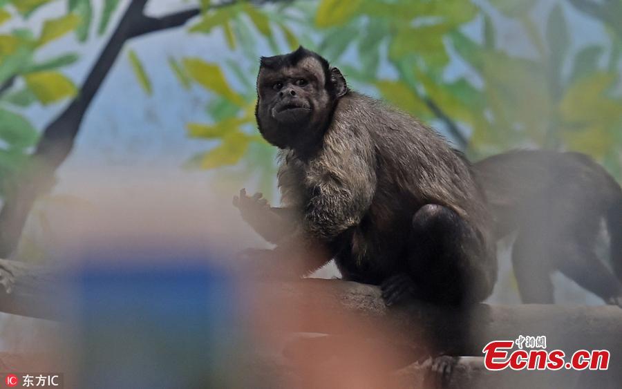 A monkey in the Tianjin Zoo has gone viral on Chinese social media for having a human-like face. The tufted capuchin, also known as black-capped capuchin, mostly feeds on fruit and invertebrates. The monkey's square face is different from its sharp-faced peers. (Photo/IC)