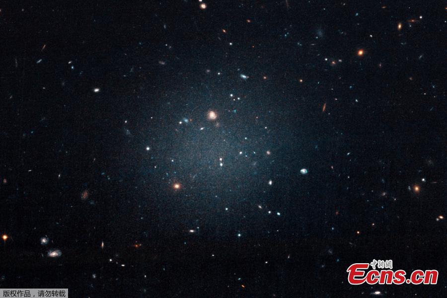 An image of galaxy NGC 1052-DF2 taken by the Hubble space telescope. The lack of dark matter in the galaxy has stumped scientists. A distant galaxy that appears completely devoid of dark matter has baffled astronomers and deepened the mystery of the universe’s most elusive substance. The absence of dark matter from a small patch of sky might appear to be a non-problem, given that astronomers have never directly observed dark matter anywhere. However, most current theories of the universe suggest that everywhere that ordinary matter is found, dark matter ought to be lurking too, making the newly observed galaxy an odd exception.(Photo/Agencies)