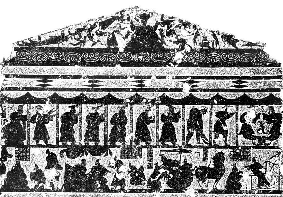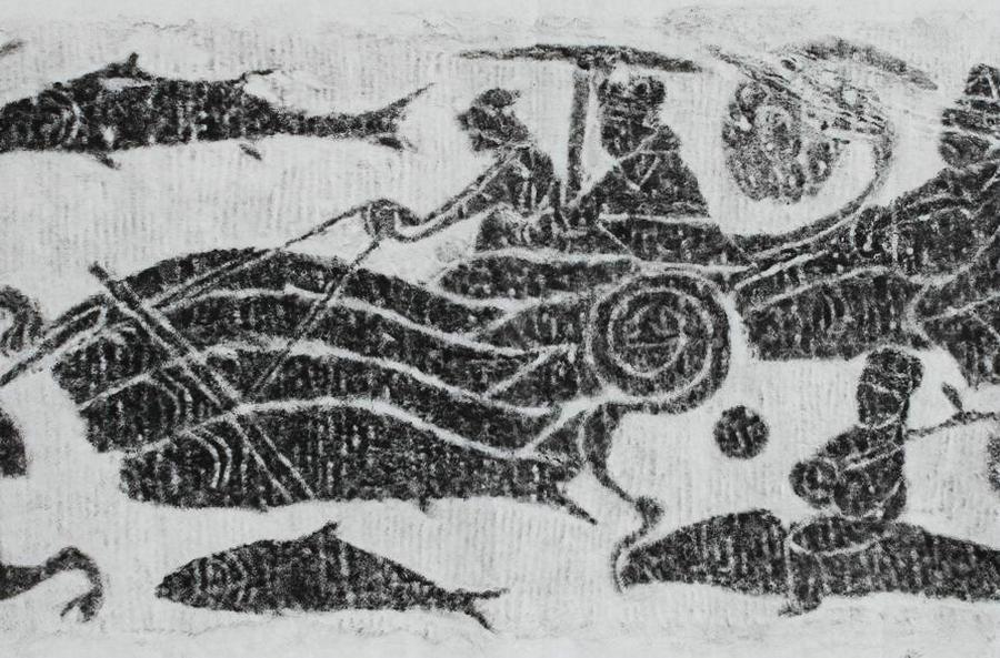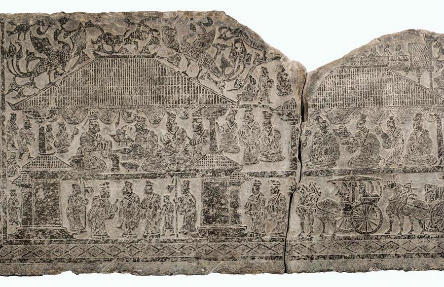 The rubbing of a brick portrait at the China Qingdao Han Portrait Brick Museum depicts a group of diplomatic envoys in the Han Dynasty. (Photo/Chinaculture.org)