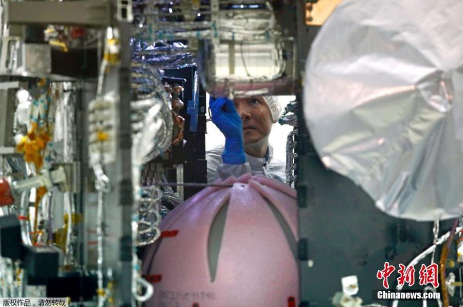 NASA's Parker Solar Probe sits inside a cleanroom at Goddard Space Flight Center, March 28, 2018, in Greenbelt, Maryland, as workers prepare it for launch. The spacecraft, which is scheduled to launch this summer, will travel closer to the Sun than any other spacecraft in history as it attempts to help researchers better understand stars throughout the universe. (Photo/Agencies)