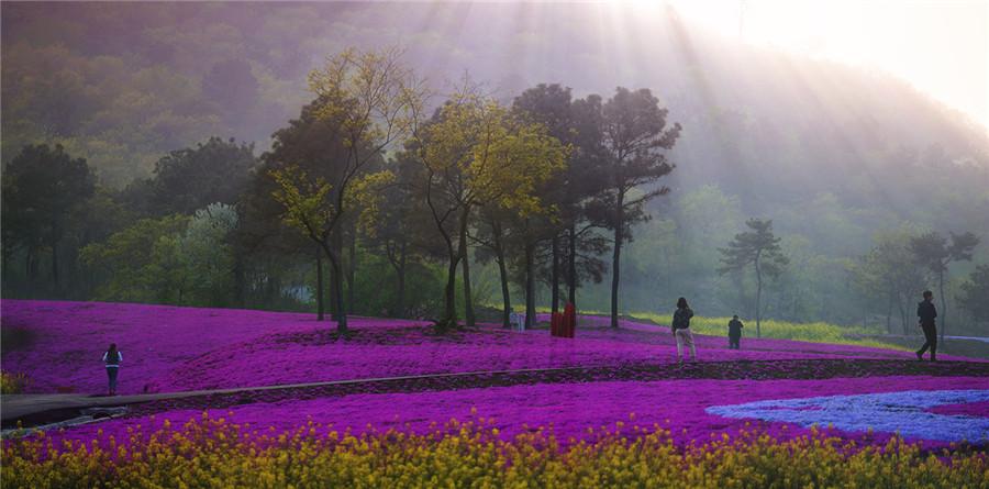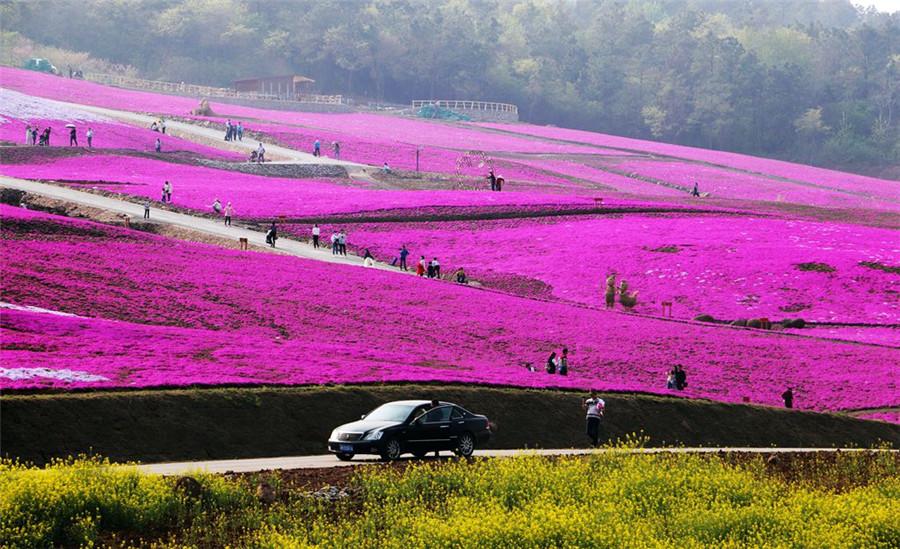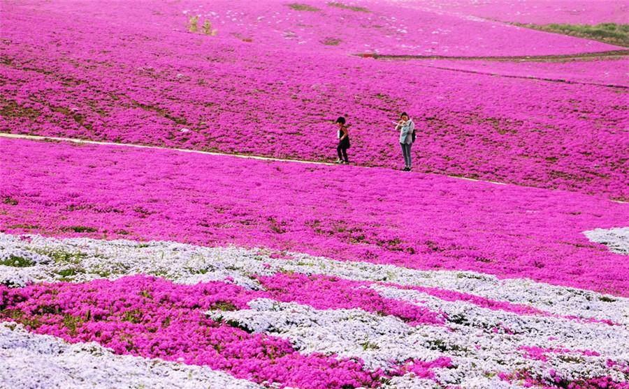 About 4.8 million creeping phlox blossoms bloom at Tianwang township in Zhenjiang, East China's Jiangsu Province. (Photos by Dai Xianing and Wan Lingyun/China Daily)