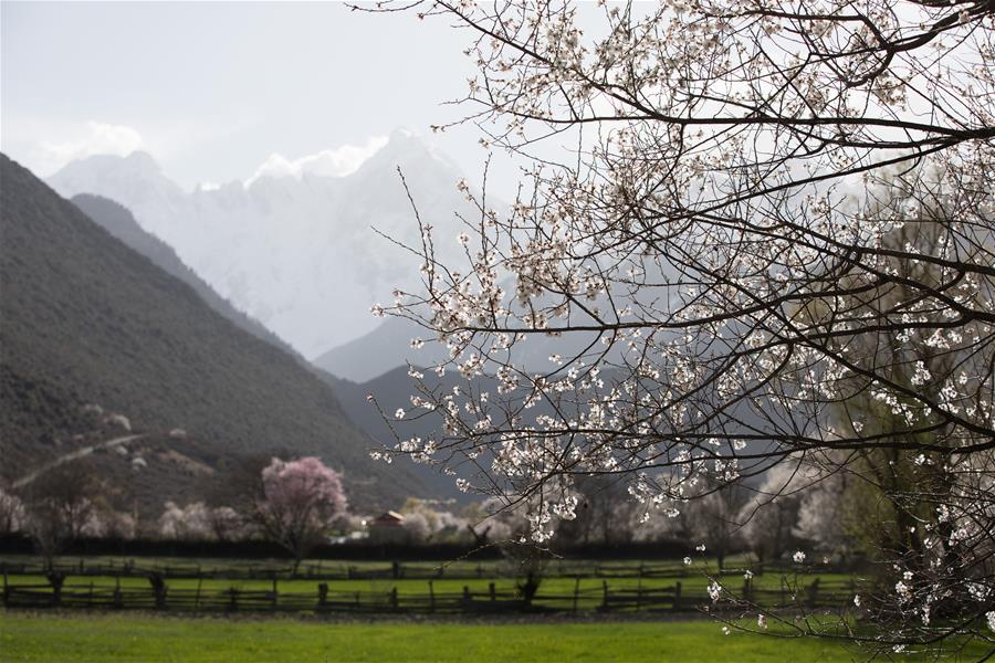 Photo taken on April 2, 2018 shows scenery of peach blossoms in Bomi County, southwest China's Tibet Autonomous Region. (Xinhua/Jin Liwang)