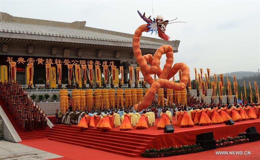 A ceremony paying homage to Huangdi, or the Yellow Emperor, who is regarded as one of the common ancestors for all Chinese, is held at the Mausoleum of Huangdi in Huangling County, northwest China's Shaanxi Province, April 5, 2018, on the occasion of the Qingming Festival. (Xinhua/Liu Xiao)
