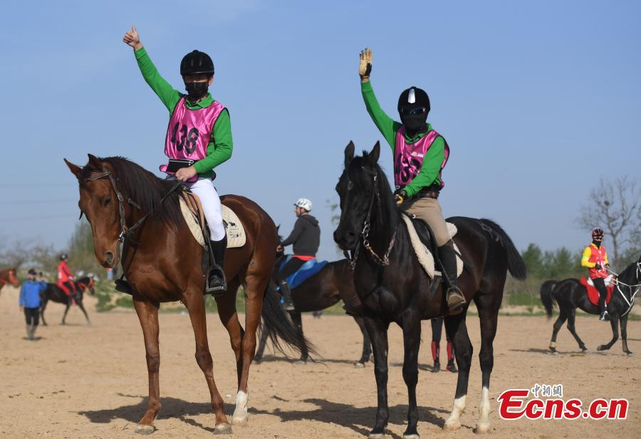 The 2018 China International Equestrian Endurance Competition opens in Dangshan County, East China's Anhui Province, April 8, 2018. More than 100 jockeys from more than 10 countries and regions took part in the race, the highest level of its kind in China, held along the old riverway of the Yellow River. (Photo: China News Service/Han Suyuan)