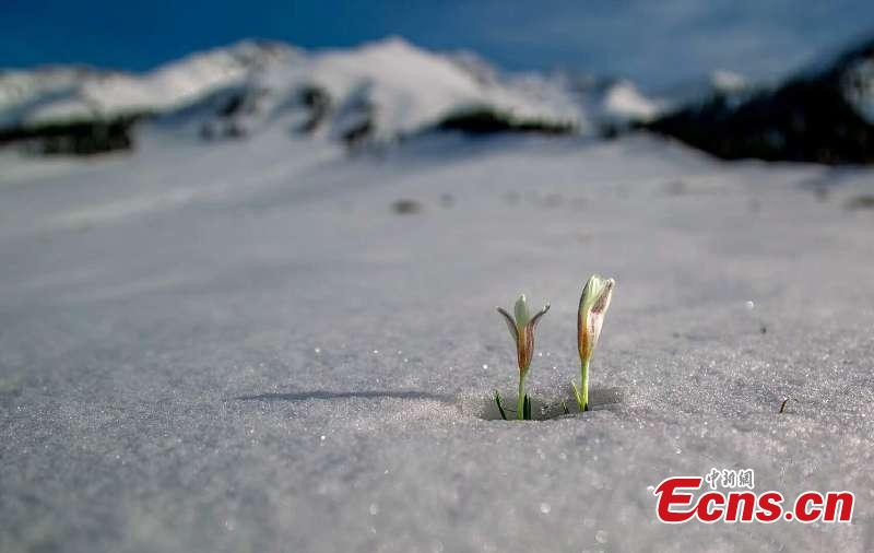 Wild lilies blossom at the foot of a snow-covered mountain in Nalati Grassland, Northwest China's Xinjiang Uygur Autonomous Region. The grassland is praised as the 'Air Grassland' because of its high altitude - it lies at an average 2,200 meters above sea level - and stunning prairie scenery. (Photo: China New Service/Li Shanshan and Yang Xiaoqian)