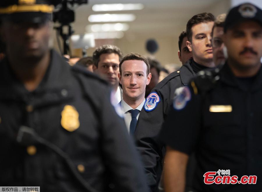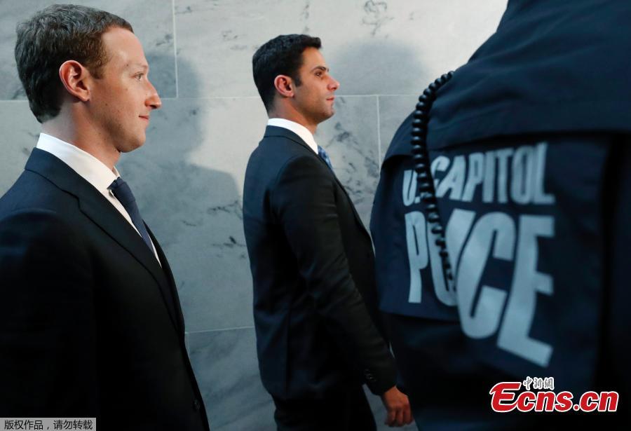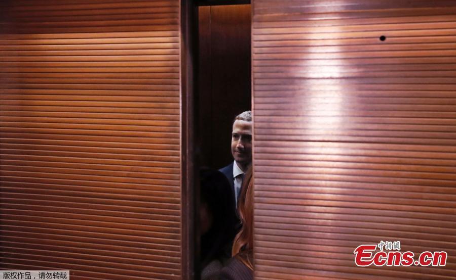 Facebook CEO Mark Zuckerberg arrives for a meeting with Senator Bill Nelson (D-FL) on Capitol Hill in Washington, U.S., April 9, 2018. Mark Zuckerberg swapped his trademark T-shirt and jeans for a dark suit and a purple tie on Monday as he met U.S. lawmakers to apologize for the social network's misuse of its members' data and to head off possible regulation. (Photo/Agencies)