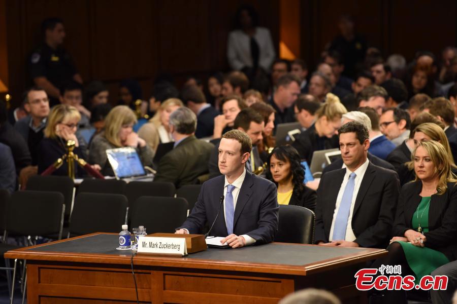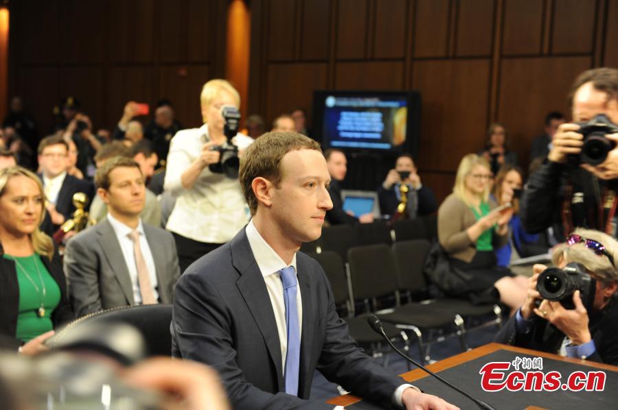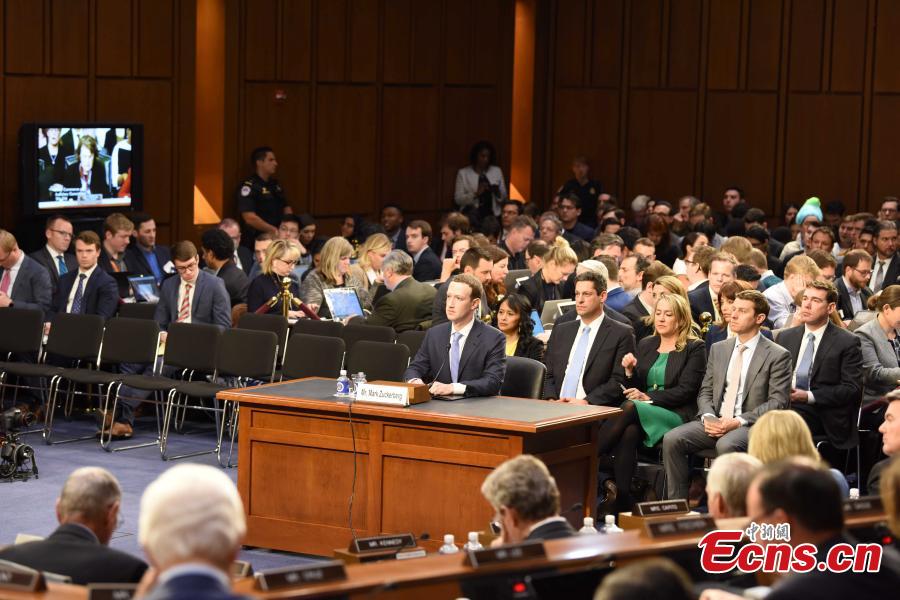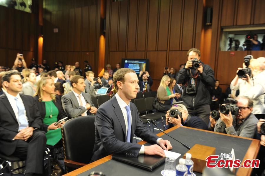 Facebook CEO Mark Zuckerberg listens while testifying before a joint Senate Judiciary and Commerce Committees hearing regarding the company's use and protection of user data, on Capitol Hill in Washington, U.S., April 10, 2018. During nearly five hours of questioning by 44 U.S. senators, Zuckerberg repeated apologies he previously made for a range of problems that have beset Facebook. (Photo: China News Service/Deng Min)