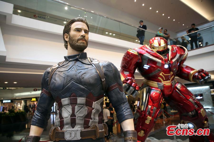 An exhibition to mark the 10-year anniversary of Marvel Studios and also welcome its upcoming superhero film Avengers: Infinity War opens in a shopping mall in Hong Kong, April 12, 2018. The exhibition, from April 14 to May 8, presents ten life-sized superhero figures, including Iron Man, Thor, Captain America, Doctor Strange and Hulk. (Photo: China News Service/Hong Shaokui)