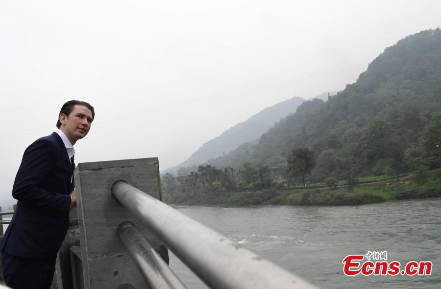 Austrian President Alexander Van der Bellen and Chancellor Sebastian Kurz are among a delegation visiting the Dujiangyan base of China Conservation and Research Center for the Giant Panda in Southwest China's Sichuan Province, April 12, 2018. (Photo: China News Service/An Yuan)