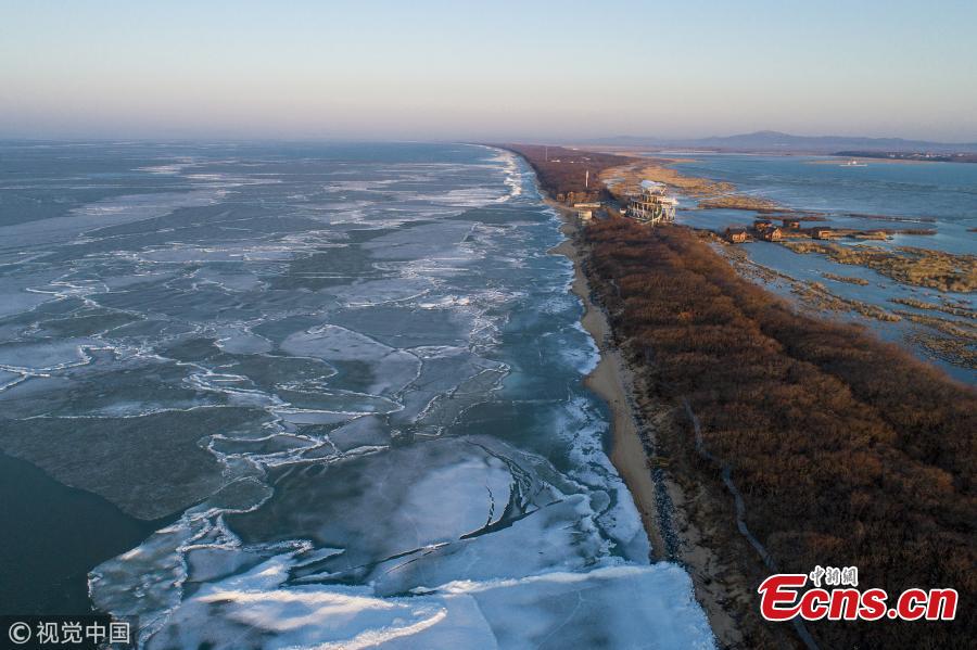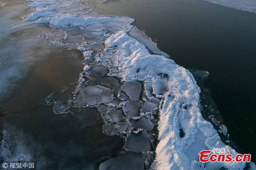 Ice is melting in Xingkai Lake, which runs along the border of China and Russia in northeast China’s Heilongjiang province. Stunning views of cracked ice have drawn visitors from far and wide to witness the awe inspiring scenery. The freshwater lake boasts a variety of fish and birds, as well as a large territory of wetlands. Due to its location in relatively high latitude, the lake starts to freeze from the end of November and begins to thaw from April. (Photo/VCG)