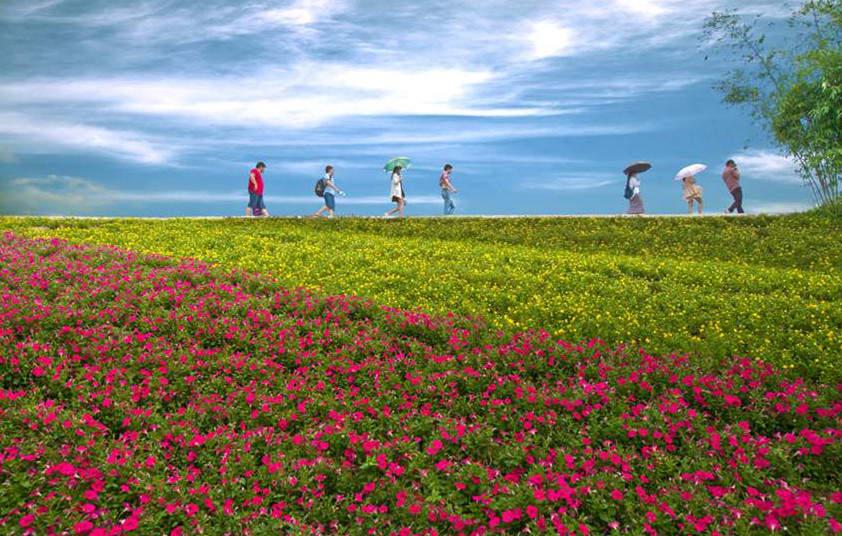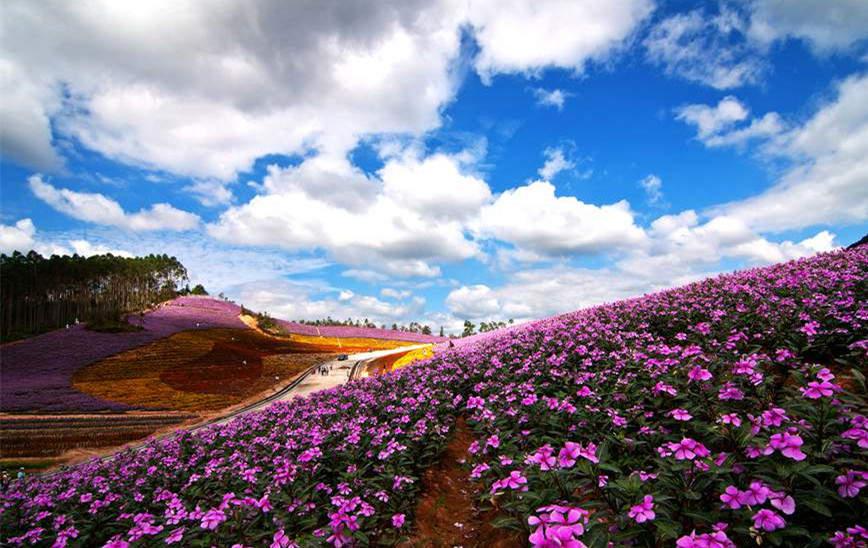 Recently, a large patch of mountainous land at the Blue Mountain scenic area in Changtai county of Fujian Province has flourished, with various flowers in bright colors. (Photo provided to chinadaily.com.cn)
