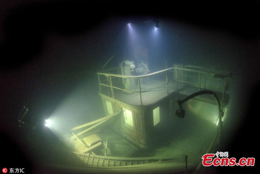 Photo captured by a diver shows the wreckage of 'The Gundila,' a 200ft-long British ship well-preserved at the bottom of Lake Superior in the U.S. Images showed the ship largely intact despite having sunk in 1911. (Photo/IC)