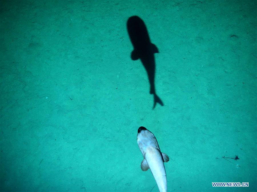 Photo taken by China's unmanned submersible Qianlong III on April 20, 2018 shows deep-sea fish. The submersible Qianlong III entered the 3,900-meter-deep sea area from the Chinese research vessel Dayang Yihao (Ocean No. 1) for the first time and took lots of photos of deep-sea creatures. (Photo/Xinhua)