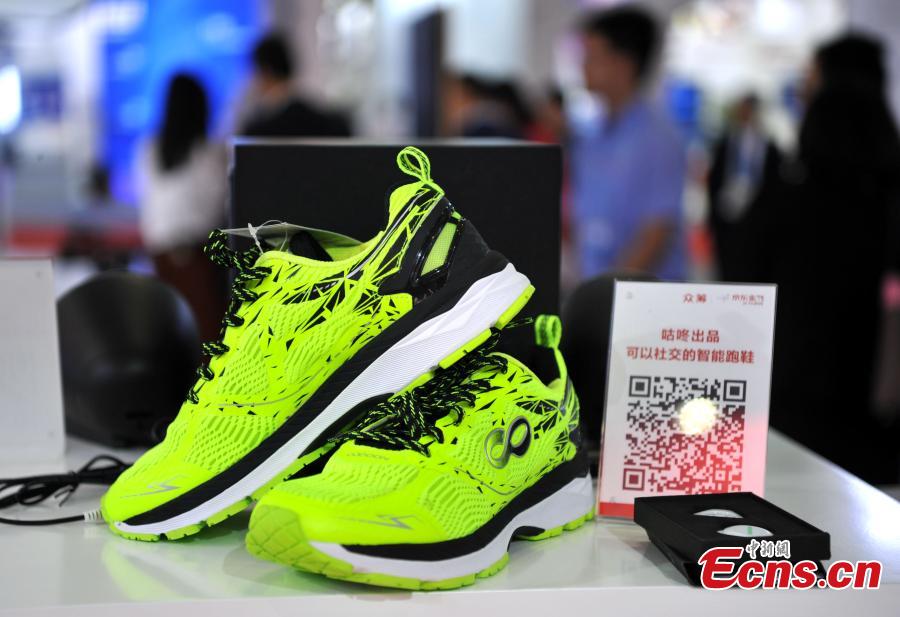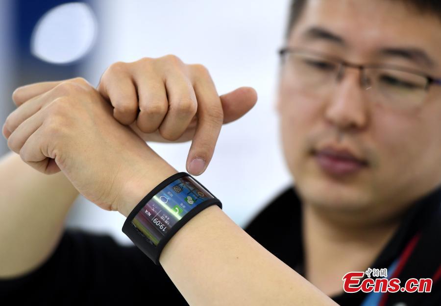 A wearable smartphone is on display at the first Digital China Summit in Fuzhou City, East China's Fujian Province, April 22, 2018. (Photo: China News Service/Zhang Bin)