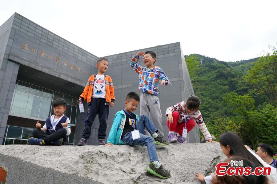 Children play in front of a community center for teenagers in Yingxiu Town, Wenchuan County, Southwest China's Sichuan Province, April 22, 2018. This year marks the tenth anniversary of the Wenchuan Earthquake, which struck on May 12, 2008. Yingxiu was one of the most hard-hit regions in the quake. (Photo: China News Service/Mao Jianjun)