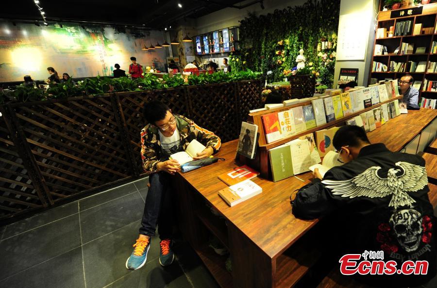 Participants in a reading competition at a book store in Taiyuan City, the capital of North China's Shanxi Province, April 22, 2018. Held in the run-up to World Book and Copyright Day on April 23, the competition required more than 50 participants to finish reading a book in five hours, followed by a test and prizes for three best readers. Organizers said the competition aims to promote reading as a hobby. (Photo: China News Service/Qu Lixia)