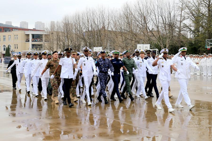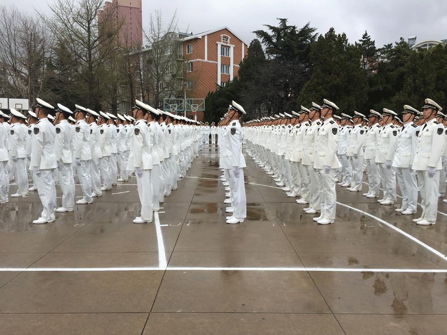 The Dalian Naval Academy holds a parade to celebrate the 69th anniversary of the PLA Navy, April 23, 2018. (Photo provided to chinadaily.com.cn)