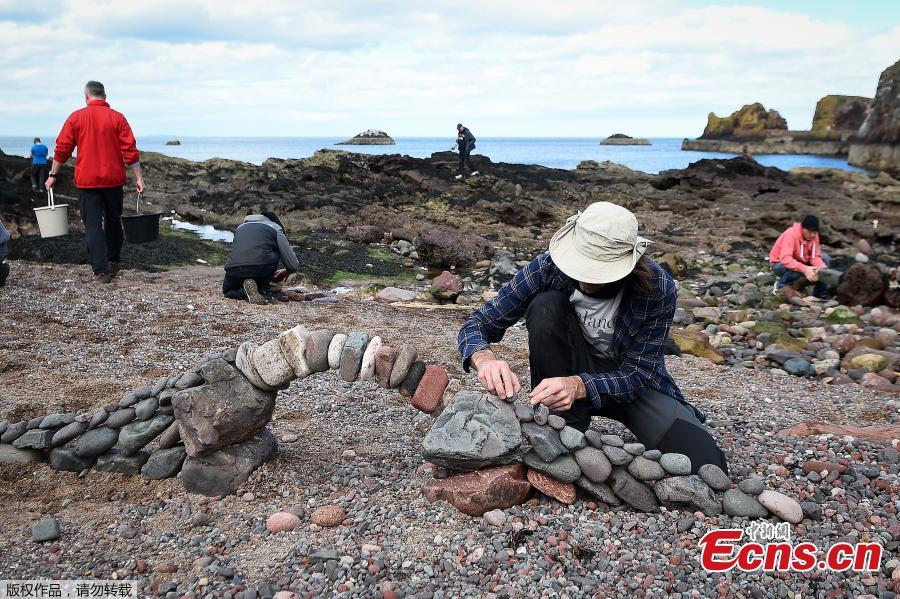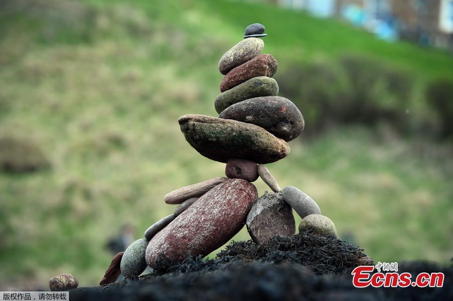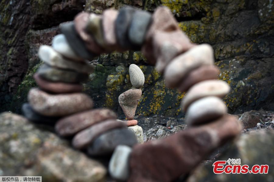 Marco Montesini from Spain competes in the European Stone Stacking Championships 2018 in Dunbar, Scotland, April 22, 2018. More than 30 participants from America, Spain, Italy and from around Britain participated the European Stone Stacking Championships, Europe's largest championships for all Stone Stacking and Rock Balancing artists and practitioners. Pedro Duran from Spain was named European champion for a second consecutive year for his stone archway. (Photo/Agencies)