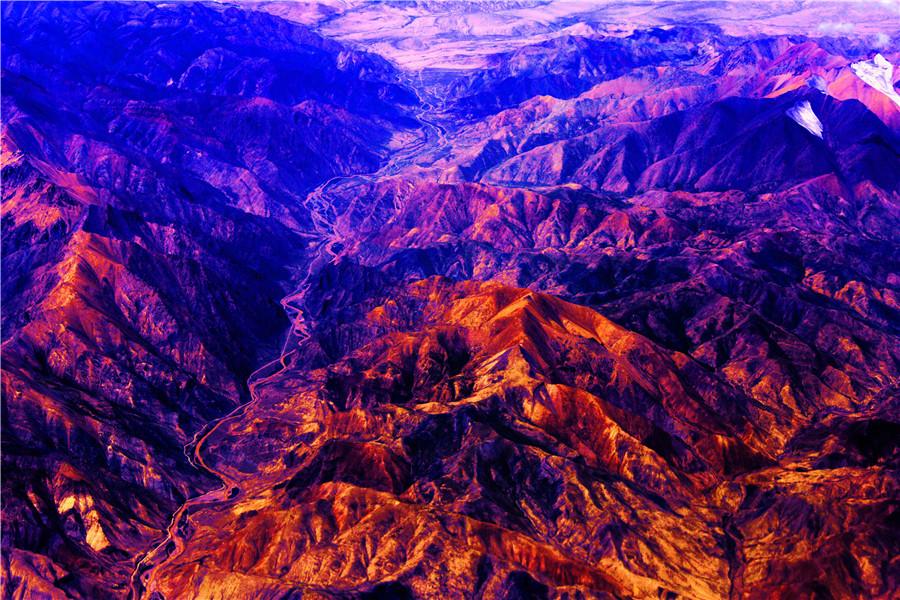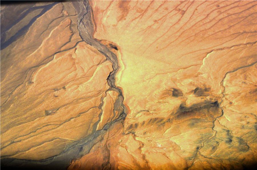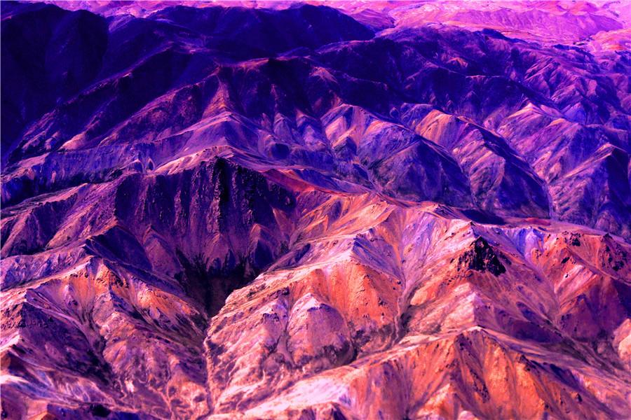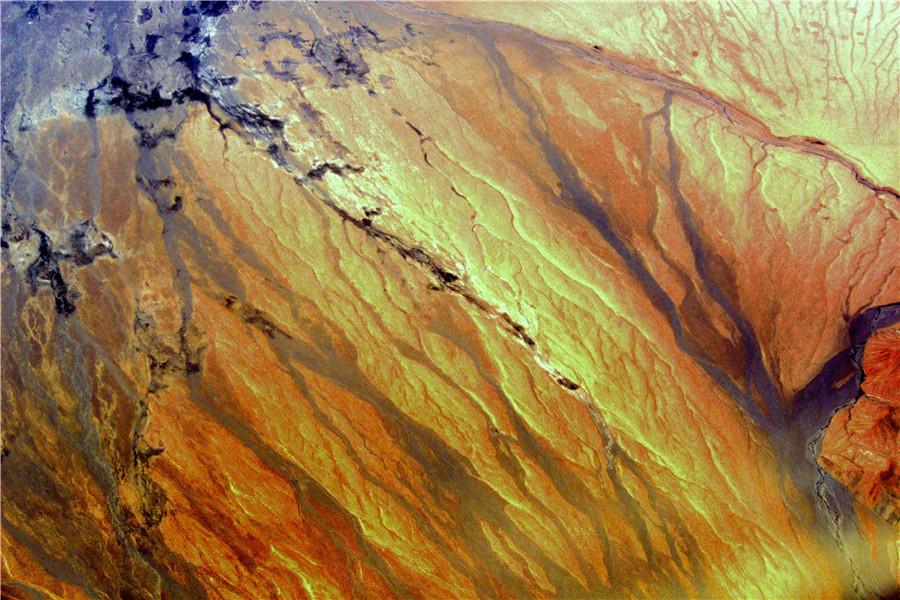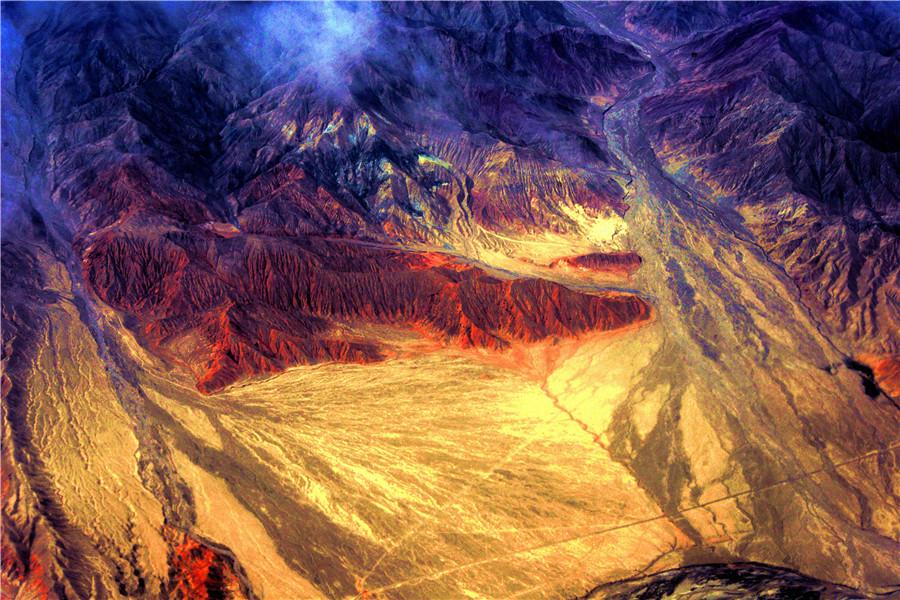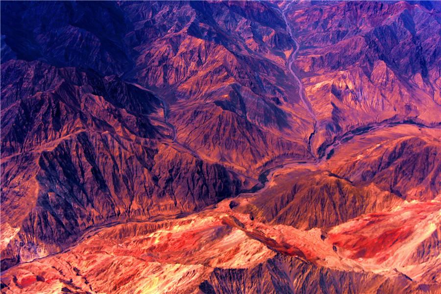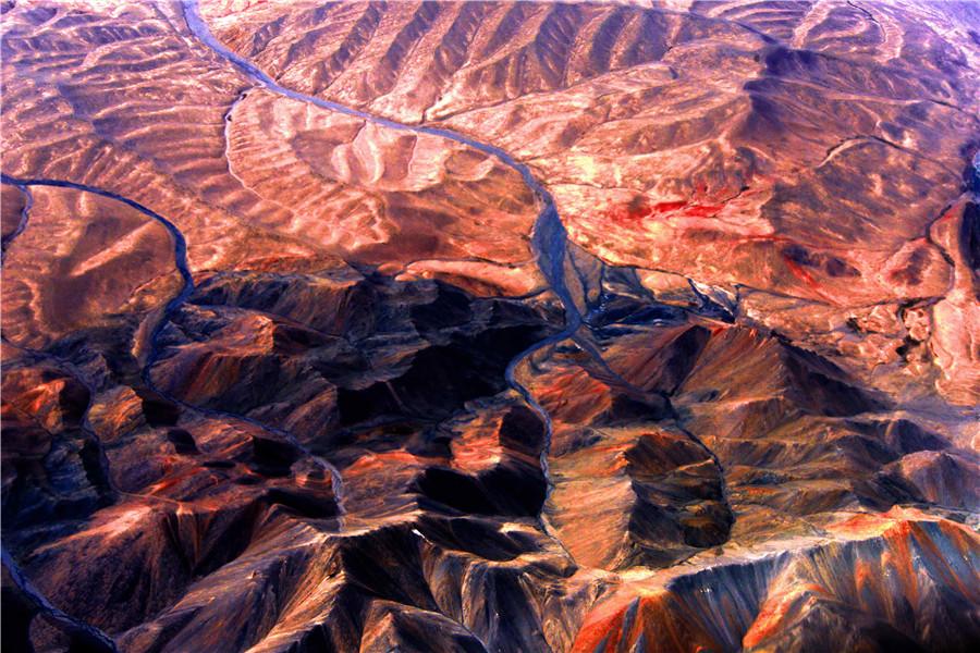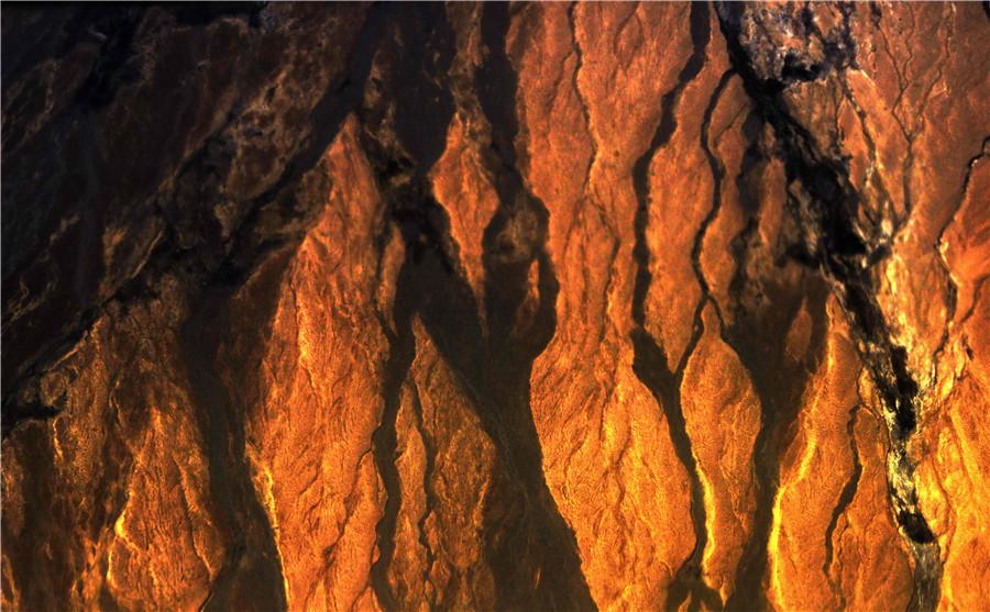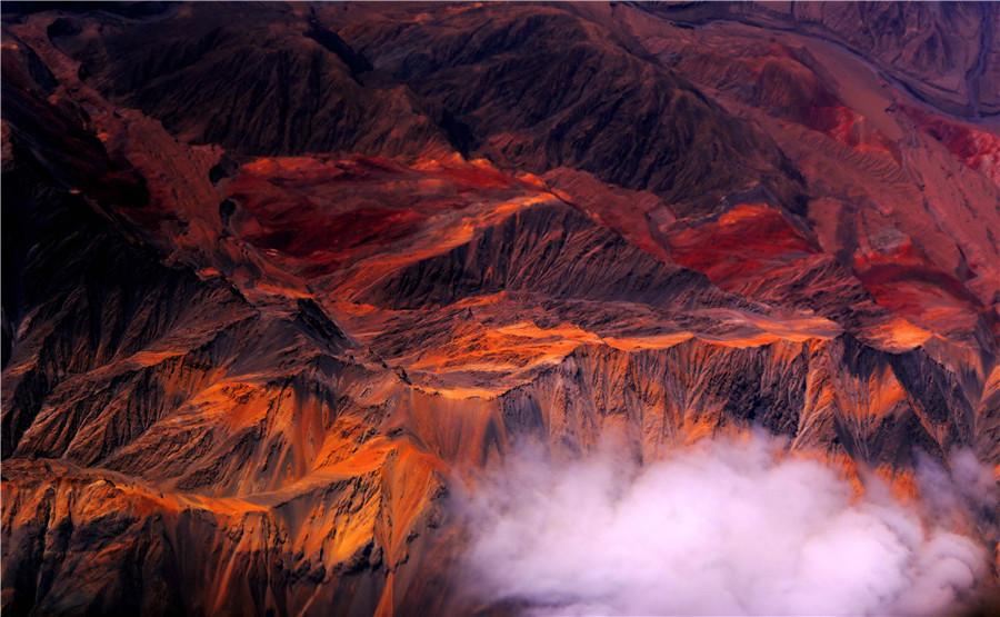 The Flaming Mountains, lying near north Turpan along China's ancient Silk Road, show a remarkable landscape with red and black gullies and trenches. (Photo by Ju Chuanjiang/chinadaily.com.cn)