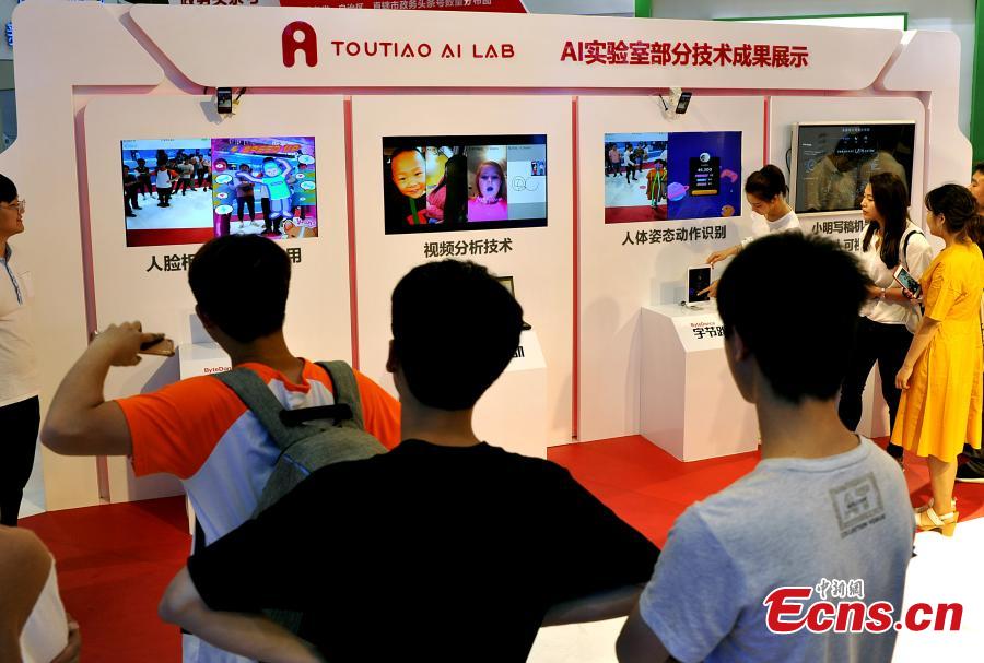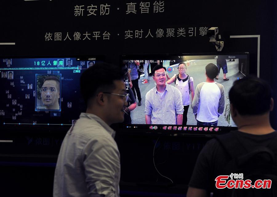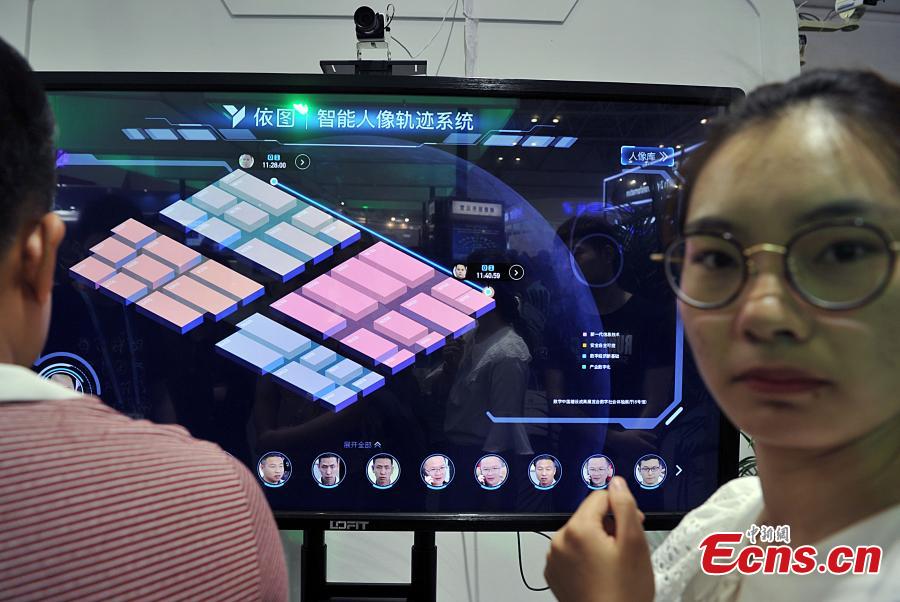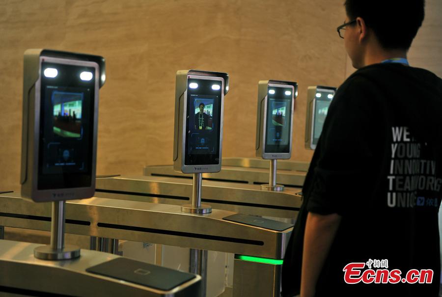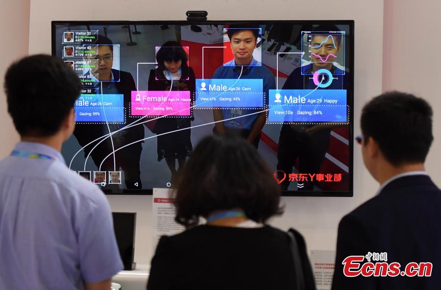 Visitors try face-recognition technology-based shopping experiences on e-commerce website JD.com during the first Digital China Summit in Fuzhou City, the capital of East China's Fujian Province. JD.com said online stores can better manage stock and improve efficiency through user profiling, big data and shopping preference analysis based on certain regions. (Photo: China News Service/Zhang Bin)