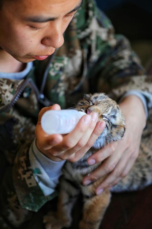 Wang Xinyu, a keeper from Magic Slope Siberia Tiger Park in Shenyang, Northeast China's Liaoning Province, is taking care of nine newborn tiger cubs. Since 2015, Wang and his colleagues have helped raise over 30 abandoned newborns.